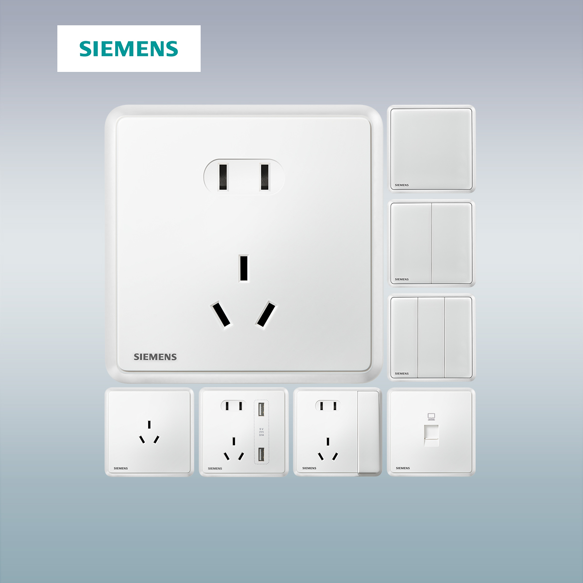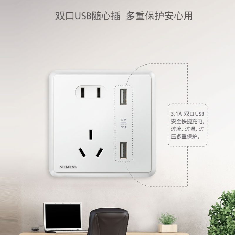 西门子开关插座璟悦玉釉白10A五孔USB一开16A家用面板旗舰店套餐