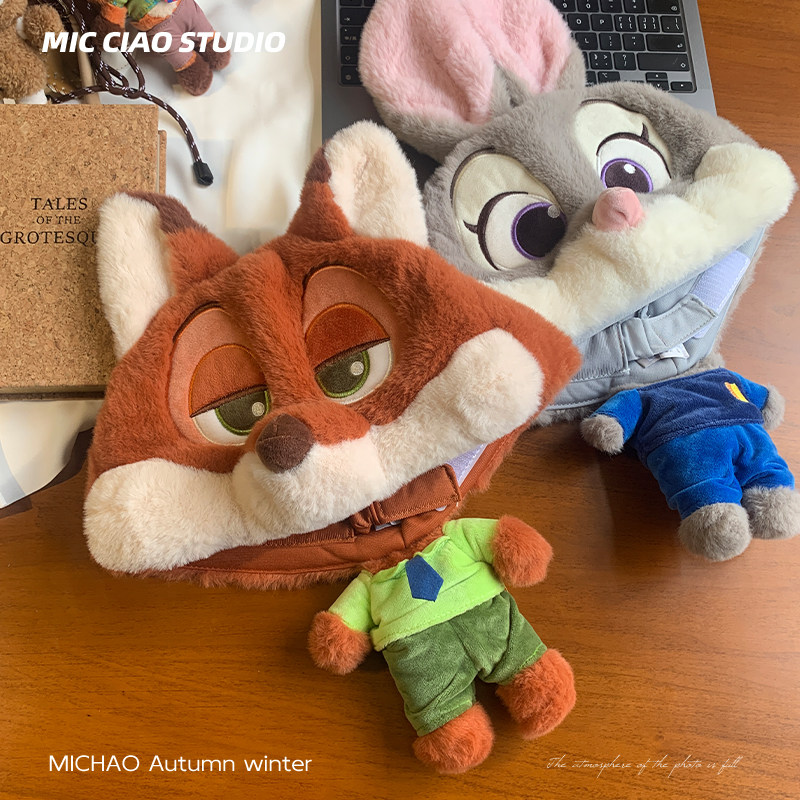 迪士尼克狐儿童帽子冬可爱疯狂动物城玩偶毛绒帽男女童朱迪套头帽