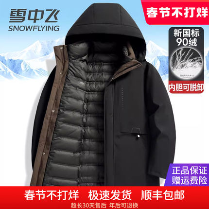 雪中飞男士羽绒服中长款中老年爸爸装内胆可脱卸一衣三穿冬季外套