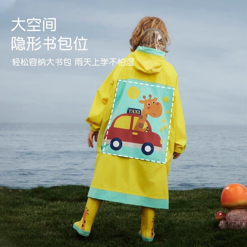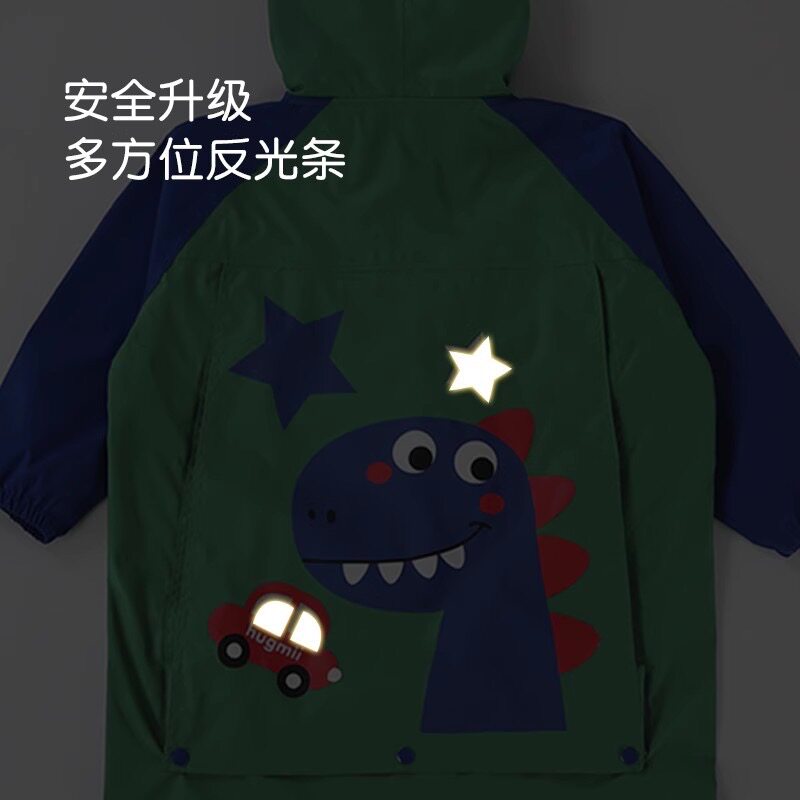 hugmii儿童雨衣男童女孩全身防水小学生上学带书包位雨披大帽檐