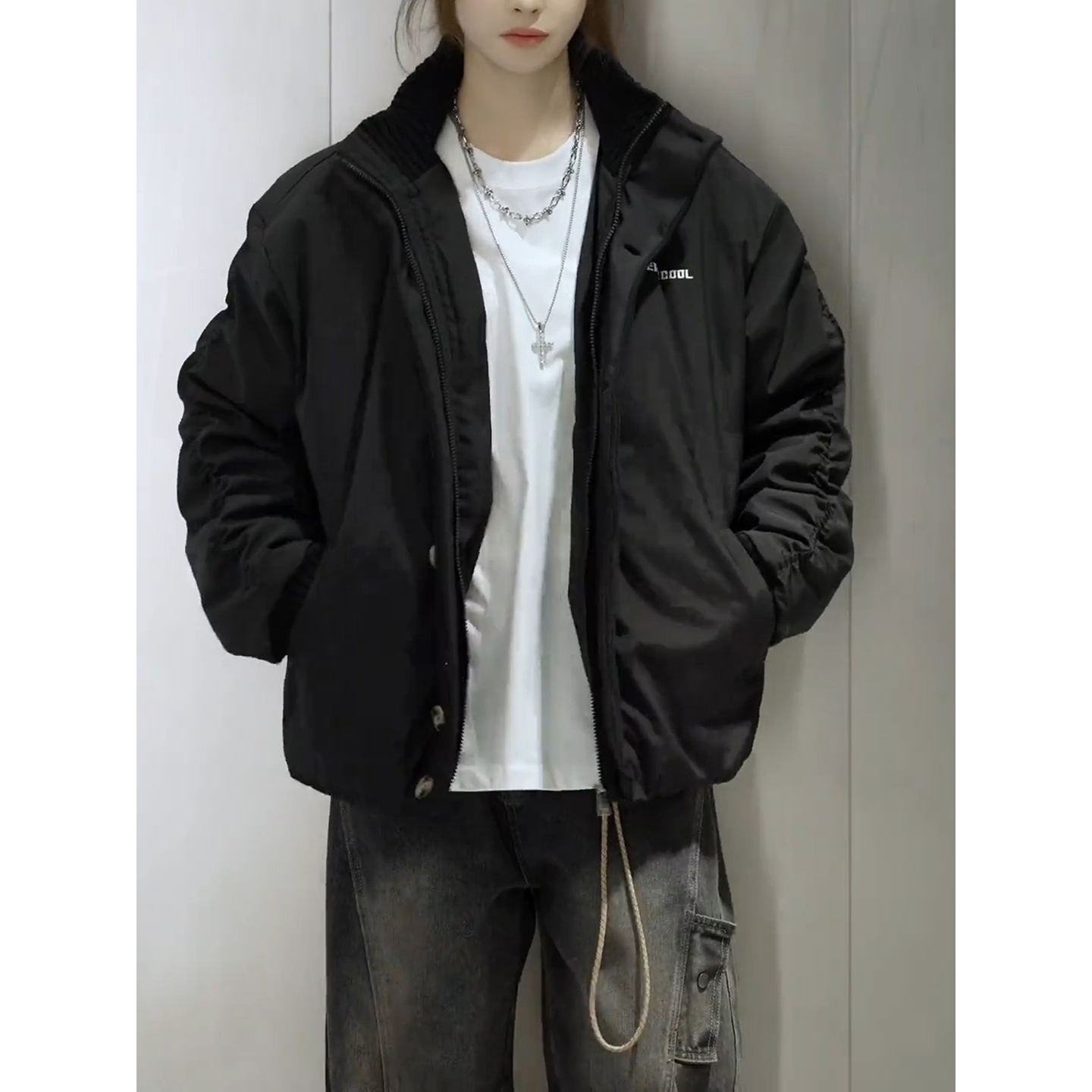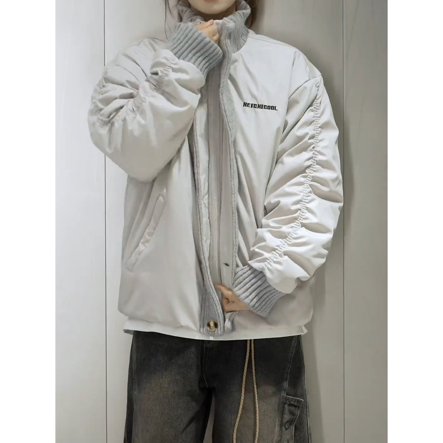 毛线针织拼接立领棉服男女冬季短款加厚面包服美式设计感情侣棉衣