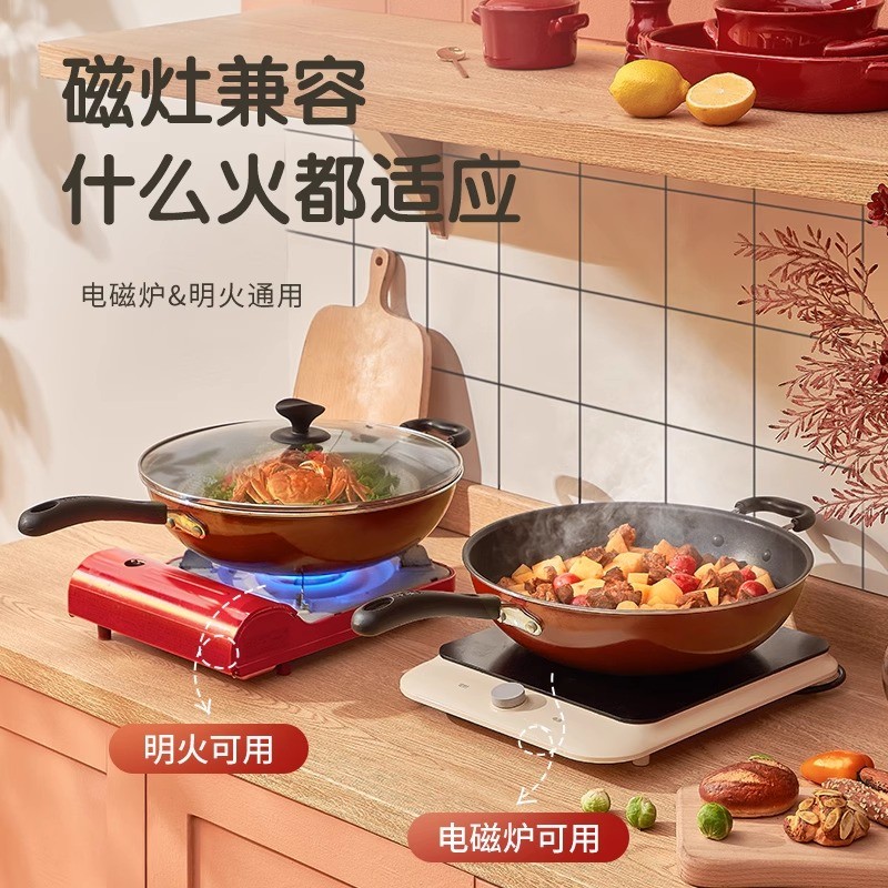 苏泊尔不粘锅炒锅家用多功能炒菜锅平底锅具燃气电磁炉适用少油烟