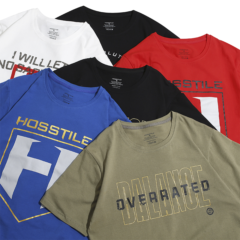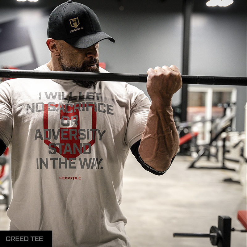 HOSSTILE运动短袖男宽松圆领大码休闲弹力棉夏季健身训练美式T恤