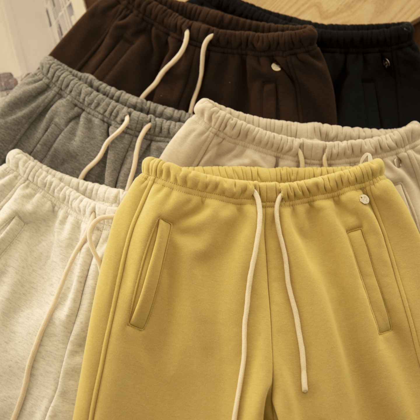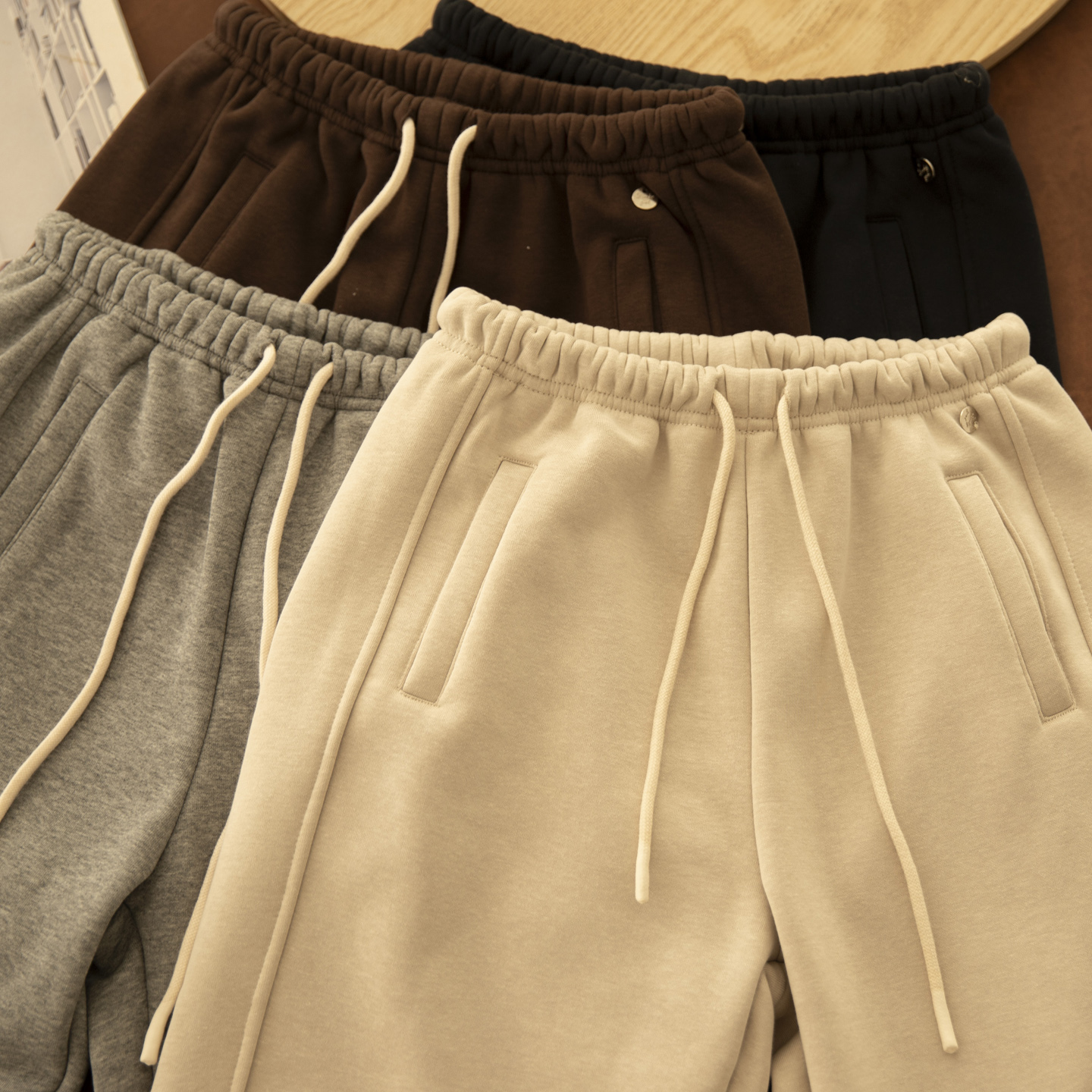 莲雾 秋冬纯松紧高腰加绒加厚阔腿休闲裤女百搭宽松直筒拖地卫裤