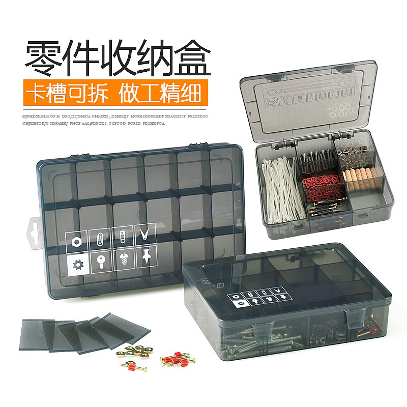 天才猫零件收纳盒工具盒电子元件配件盒多格样品塑料盒螺丝分类箱