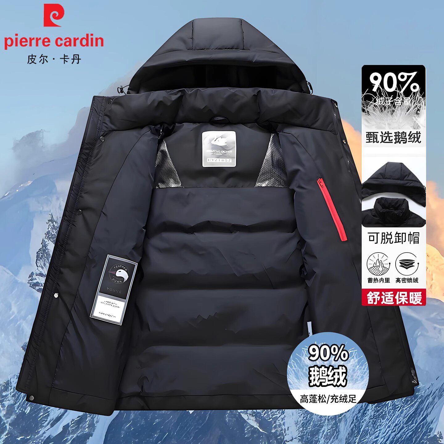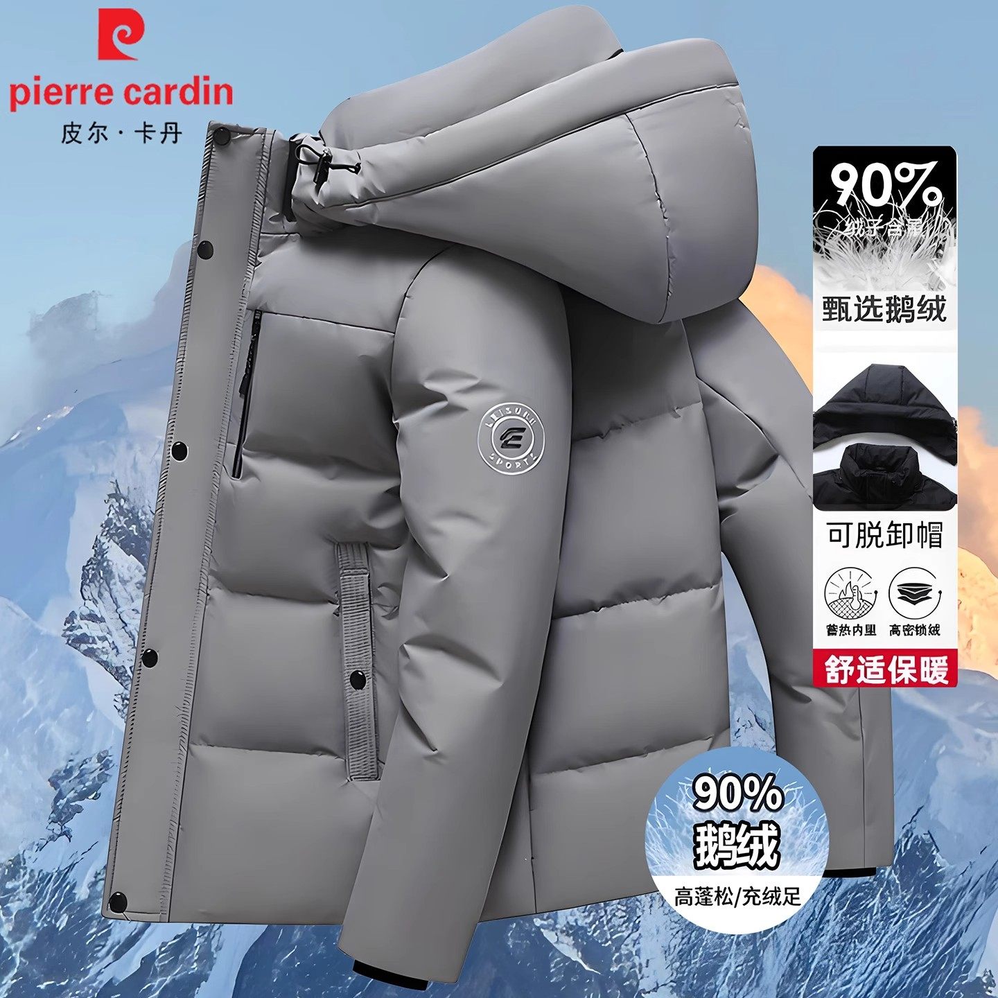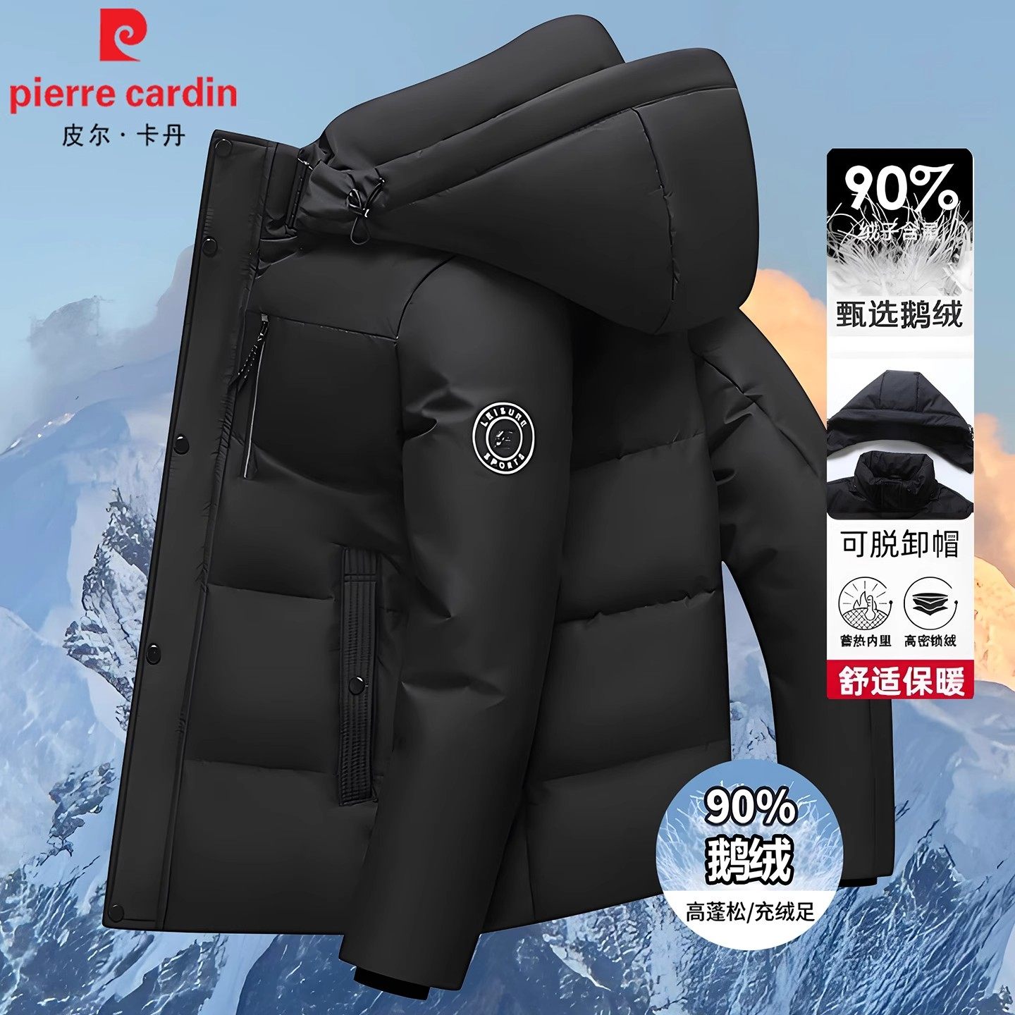 皮尔卡丹男士羽绒服短款2025新款连帽鹅绒服商务休闲冬装加厚外套