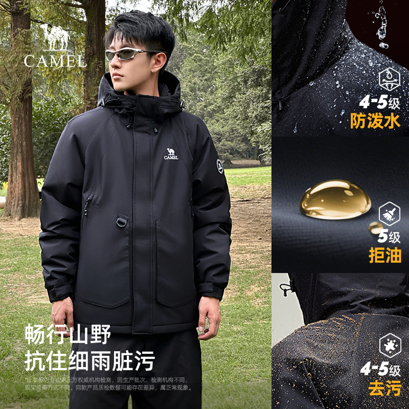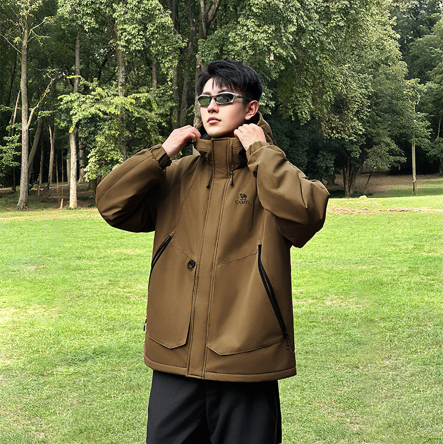 骆驼男装工装棉服男秋冬季2025新款棉衣加绒加厚防水棉夹克外套男