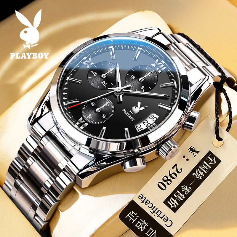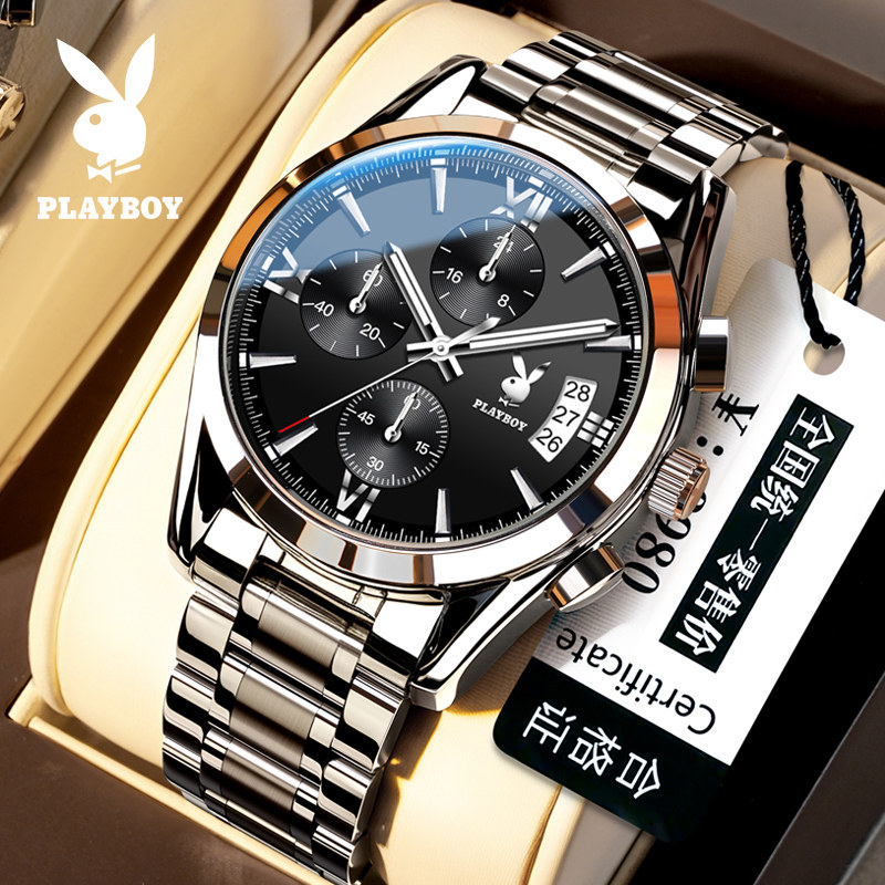 正品花花公子黑骑士手表男士多功能男表时尚防水石英男表腕表十大