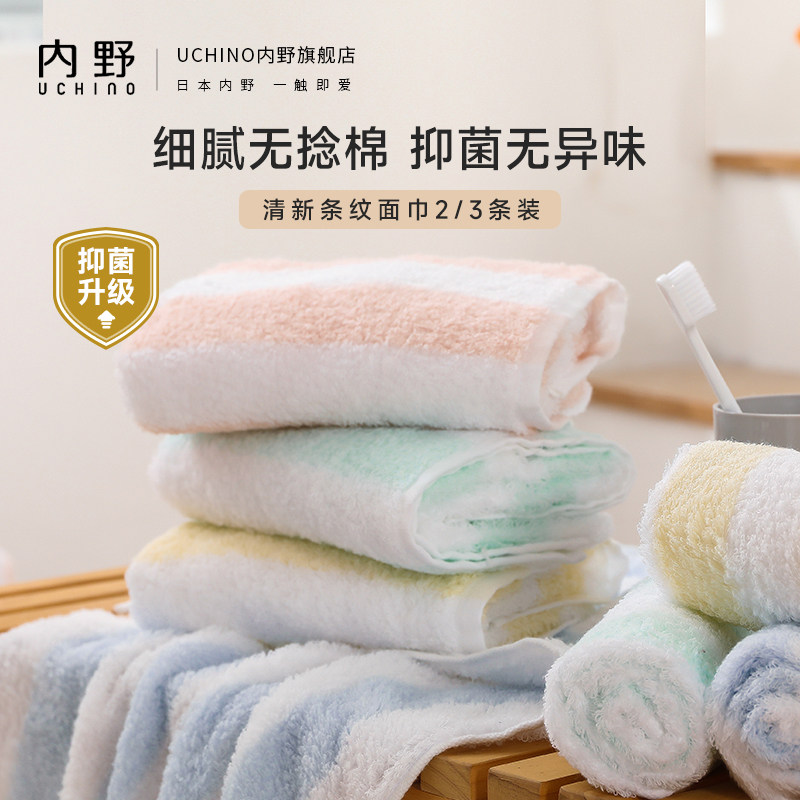 内野毛巾全棉纯棉清新条纹抑菌面巾柔软吸水洗脸巾儿童毛巾清仓促