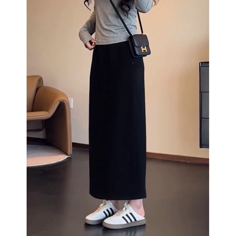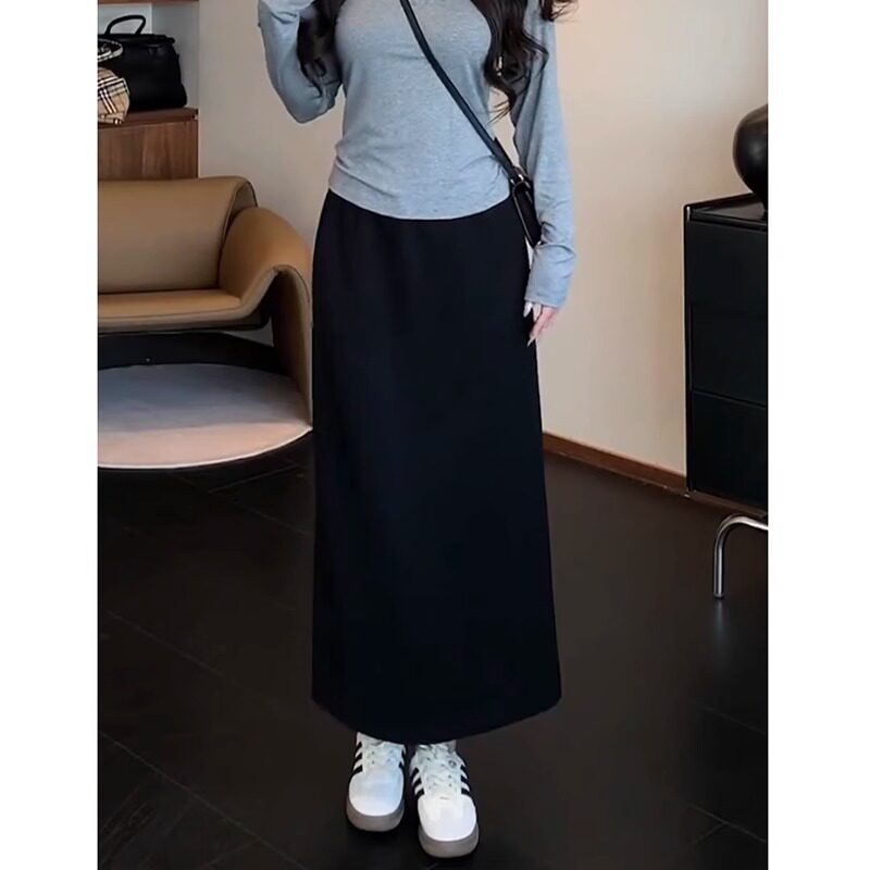 大码胖mm高腰垂感直筒遮胯半身裙女夏季新款后开叉显瘦遮肚中长裙