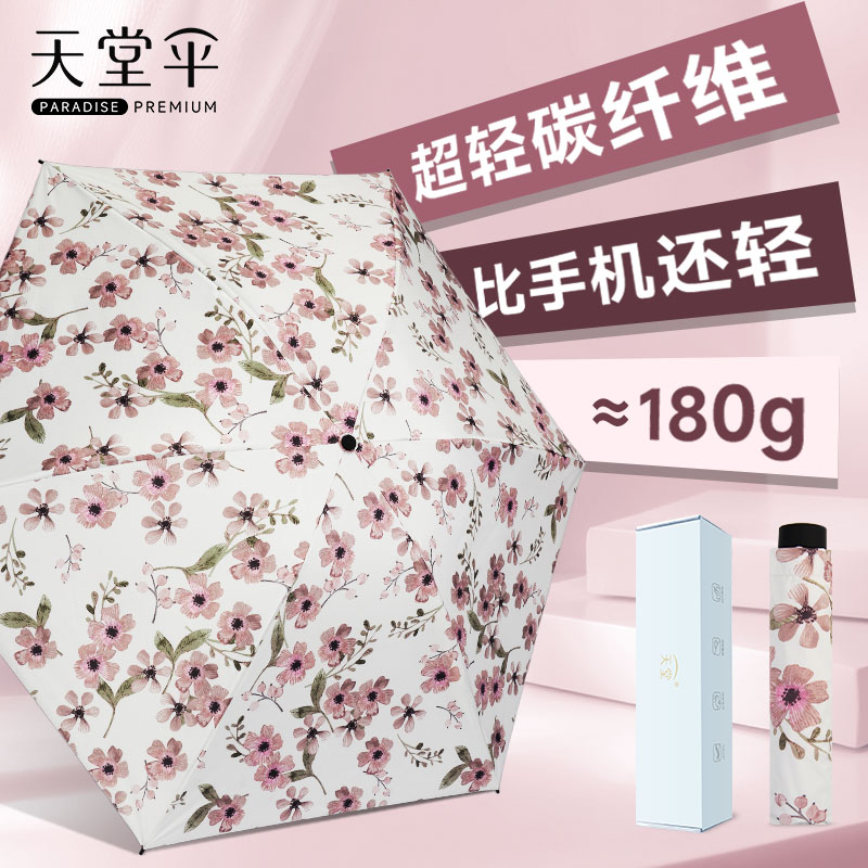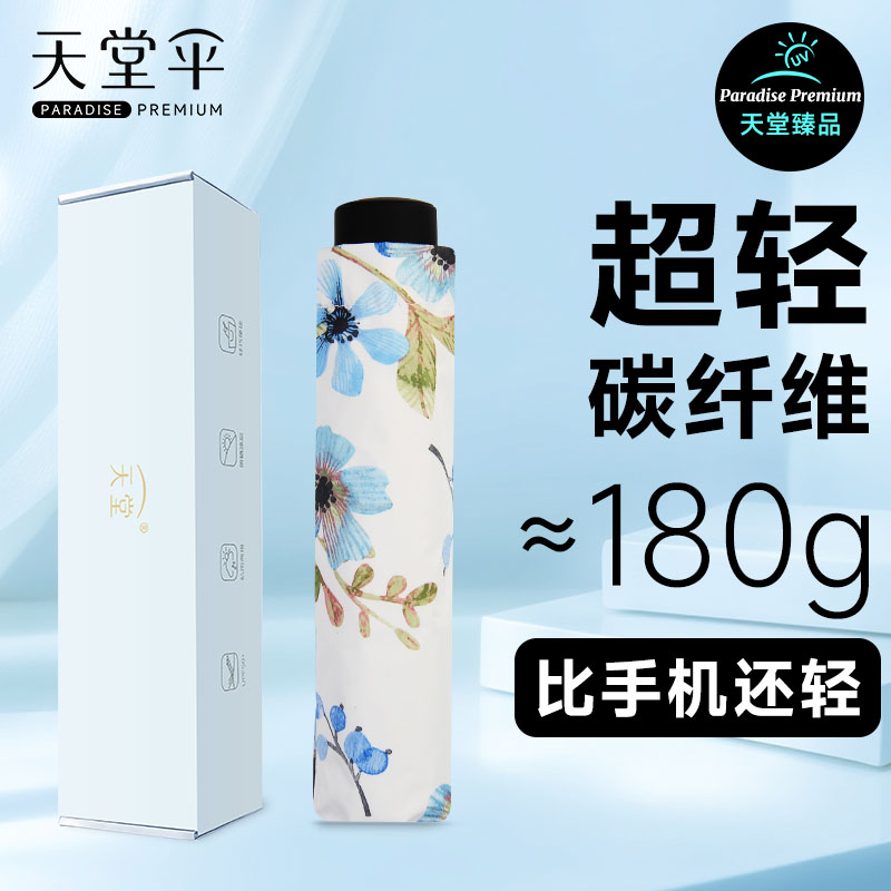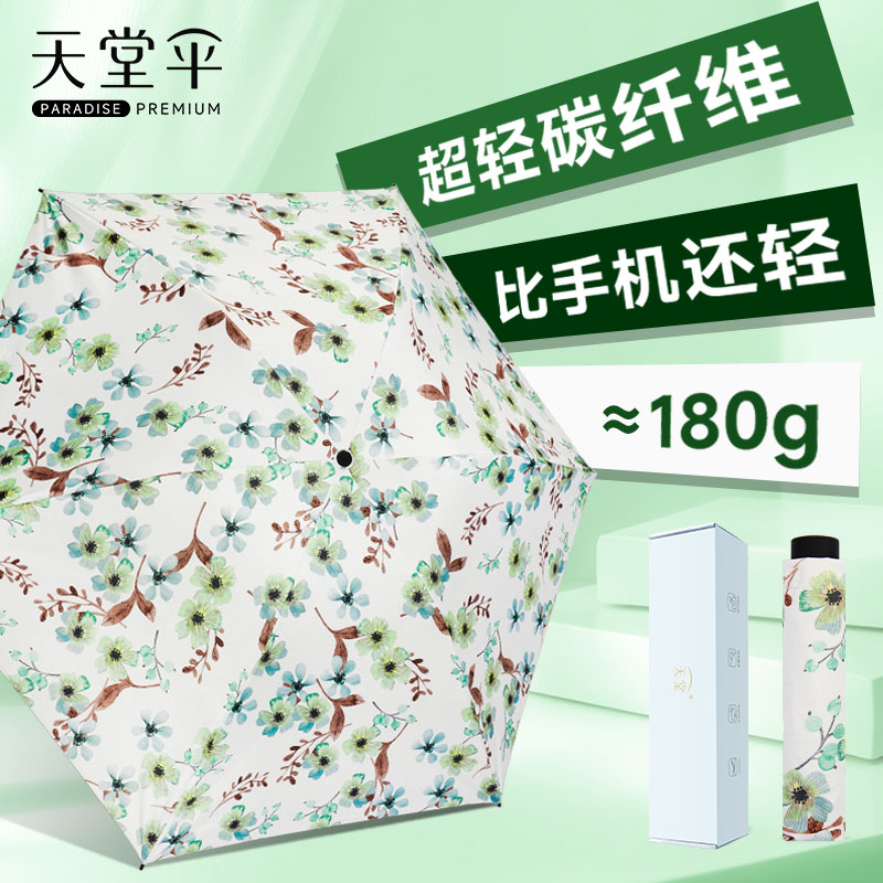 天堂伞超轻碳纤维遮阳伞黑胶防晒防紫外线折叠晴雨伞女轻便太阳伞