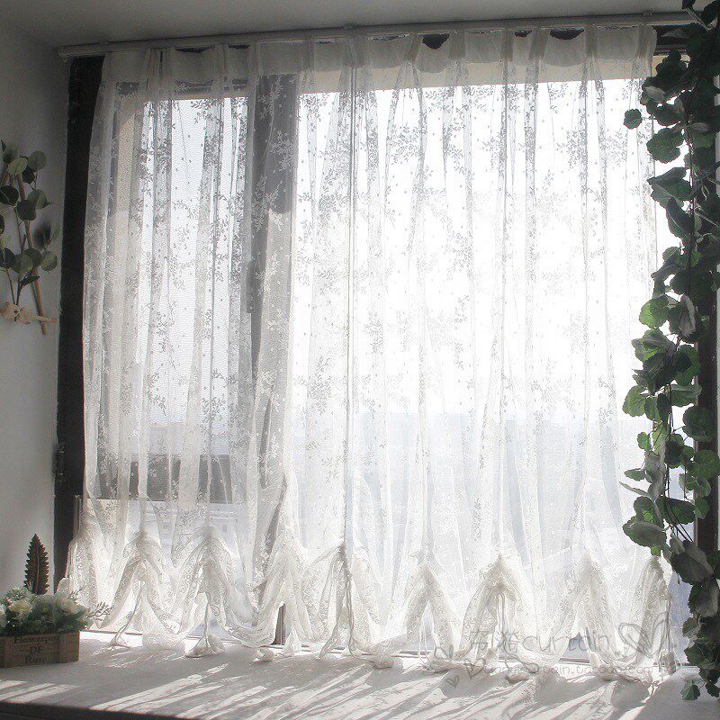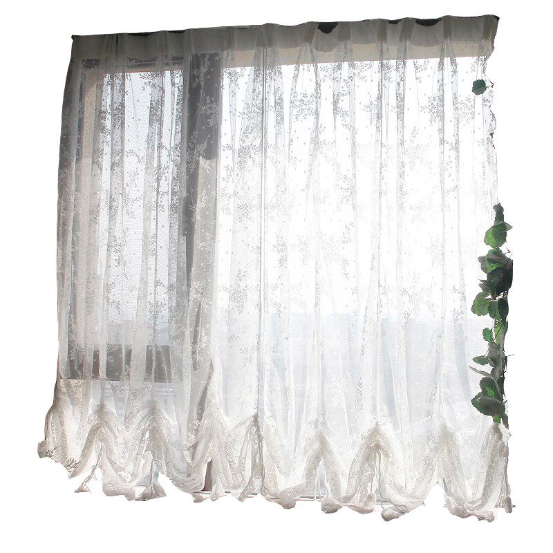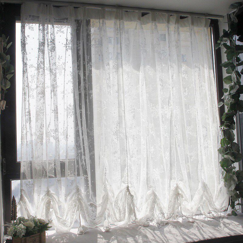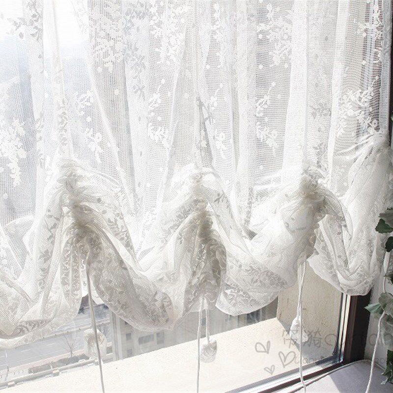 蕾丝网纱白色窗纱提拉帘瀑布帘升降窗帘气球帘客厅卧室飘窗窗帘纱