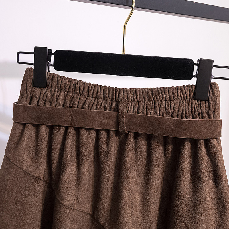 大码微胖mm美拉德咖色麂皮半身裙女秋冬高腰显瘦不规则中长款裙子