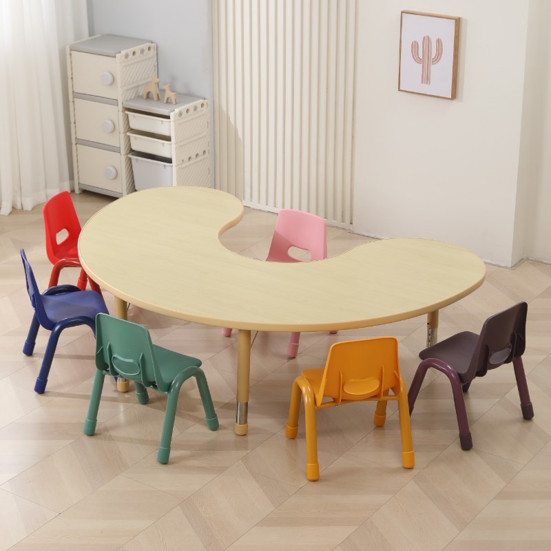 儿童桌椅套装实木升降月亮桌宝宝学习月牙弧形桌幼儿园半圆桌加厚