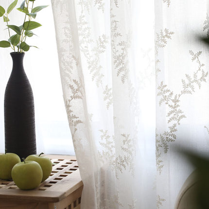 北欧风格田园刺绣窗纱帘白纱卧室落地窗棉麻窗沙帘成品白色窗帘纱
