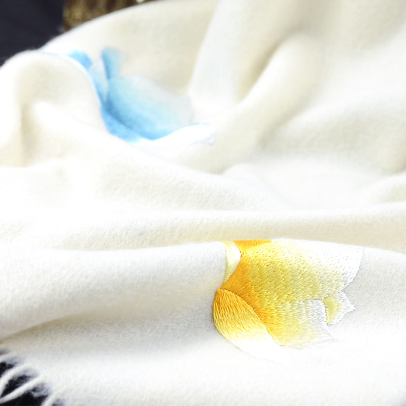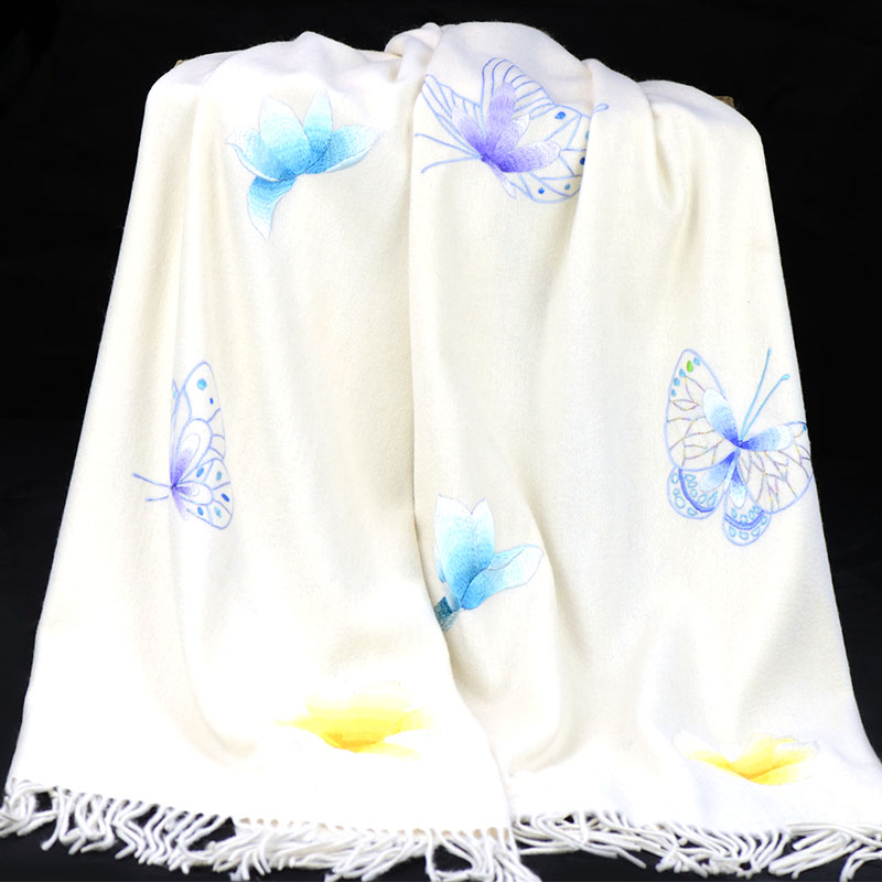 名古绣艺 新款手工苏绣羊绒披肩围巾女冬季《空谷幽兰》特色礼品