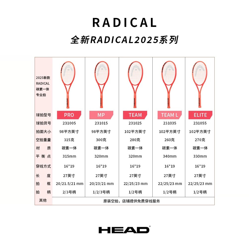 HEAD海德L4网球拍2025新款Radical 弗里茨张之臻同款全碳素专业拍