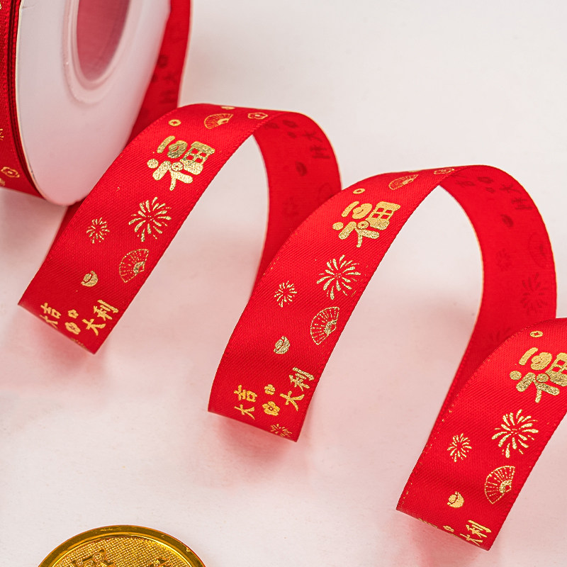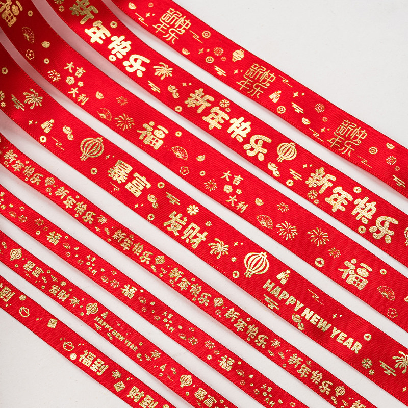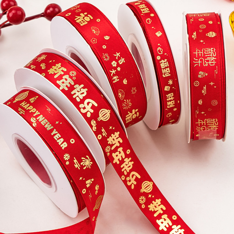 2026新年快乐蛋糕装饰丝带礼品礼盒缎带鲜花花束包装彩带甜品绑带