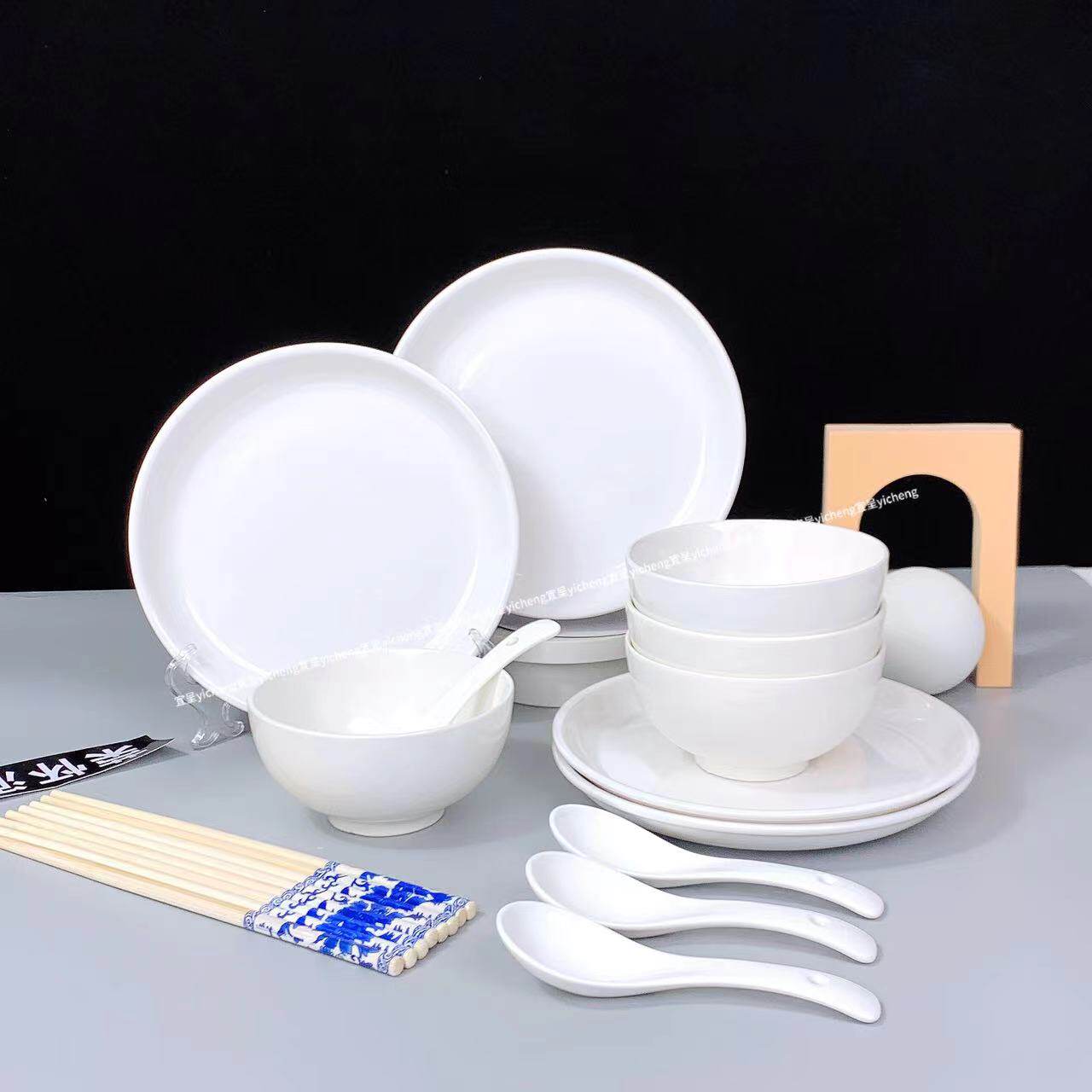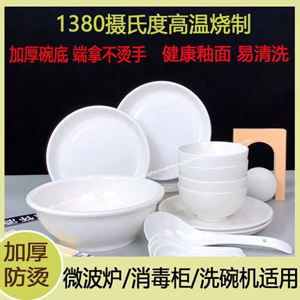 家用纯白餐具碗碟套装健康陶瓷餐具中式风简约陶瓷碗盘筷组合防烫