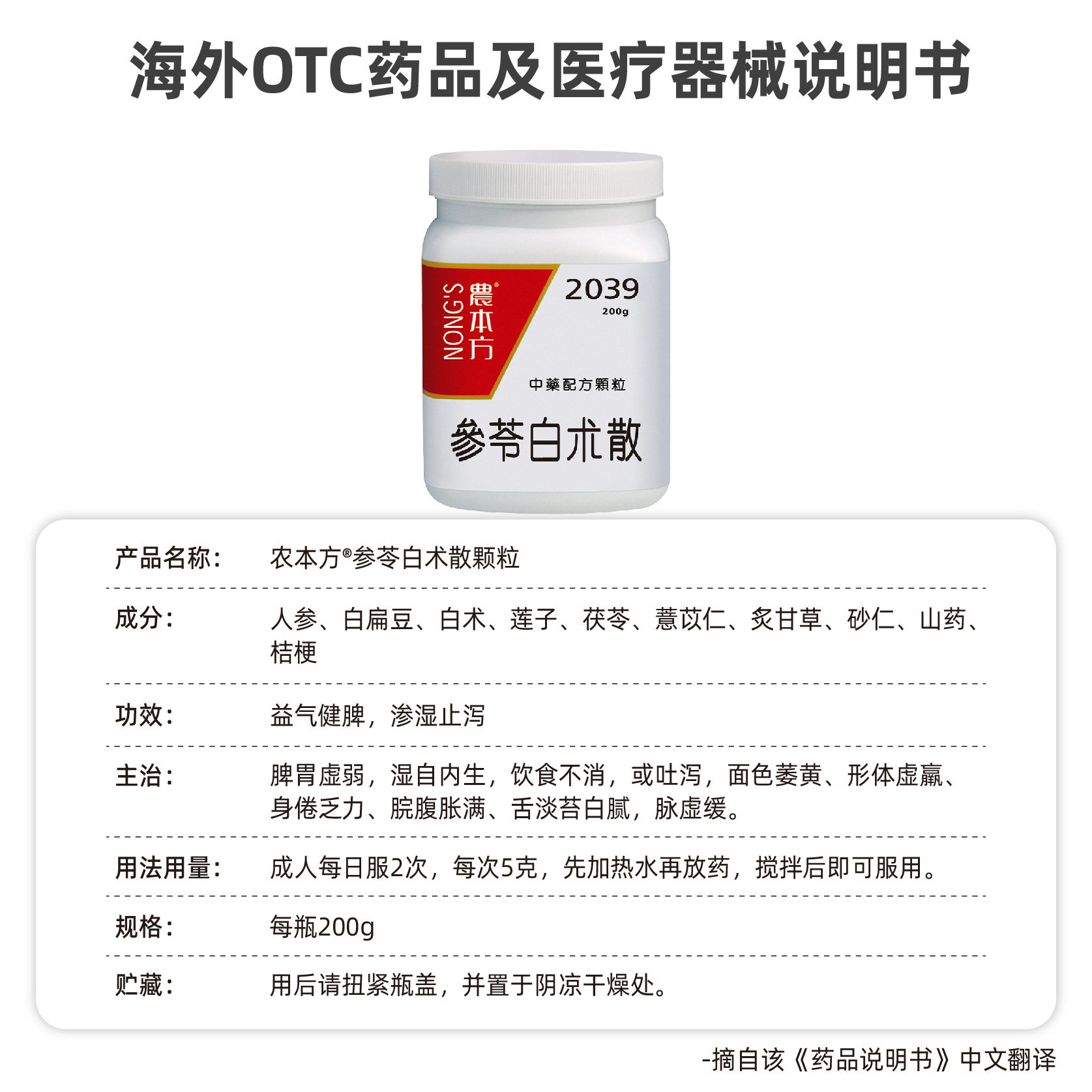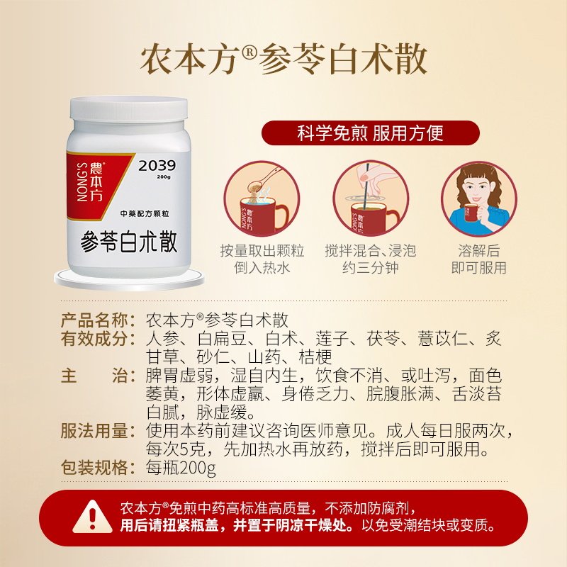农本方参苓白术散颗粒香港浓缩中药补脾胃益肺气健脾祛湿面黄200G