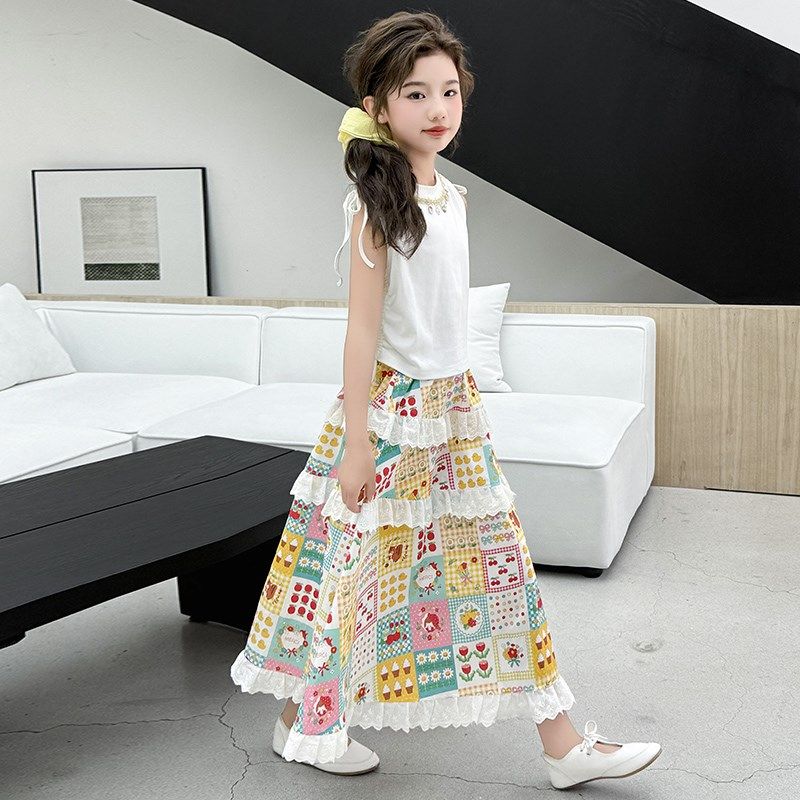 女童半身裙套装夏季韩版洋气穿搭设计感背心长裙夏装连衣裙两件套