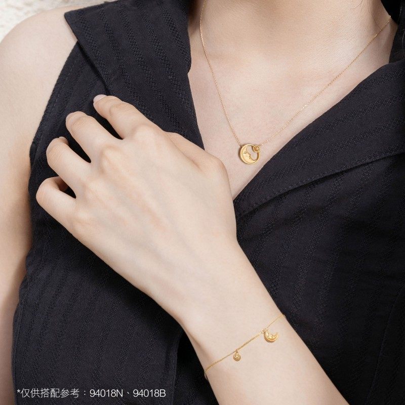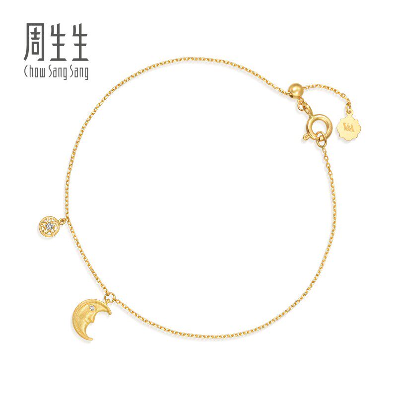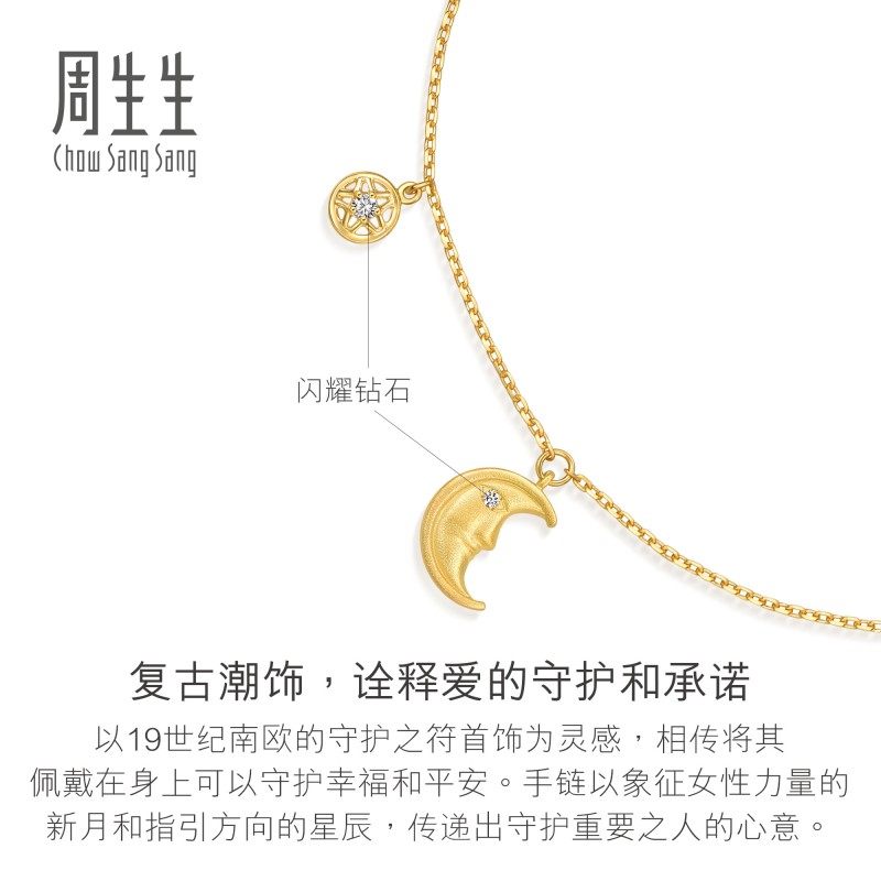 周生生V&A钻石护身符星月手链18K黄色黄金腕链94018B