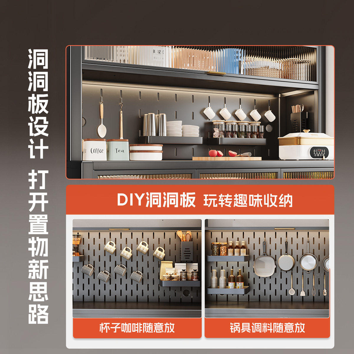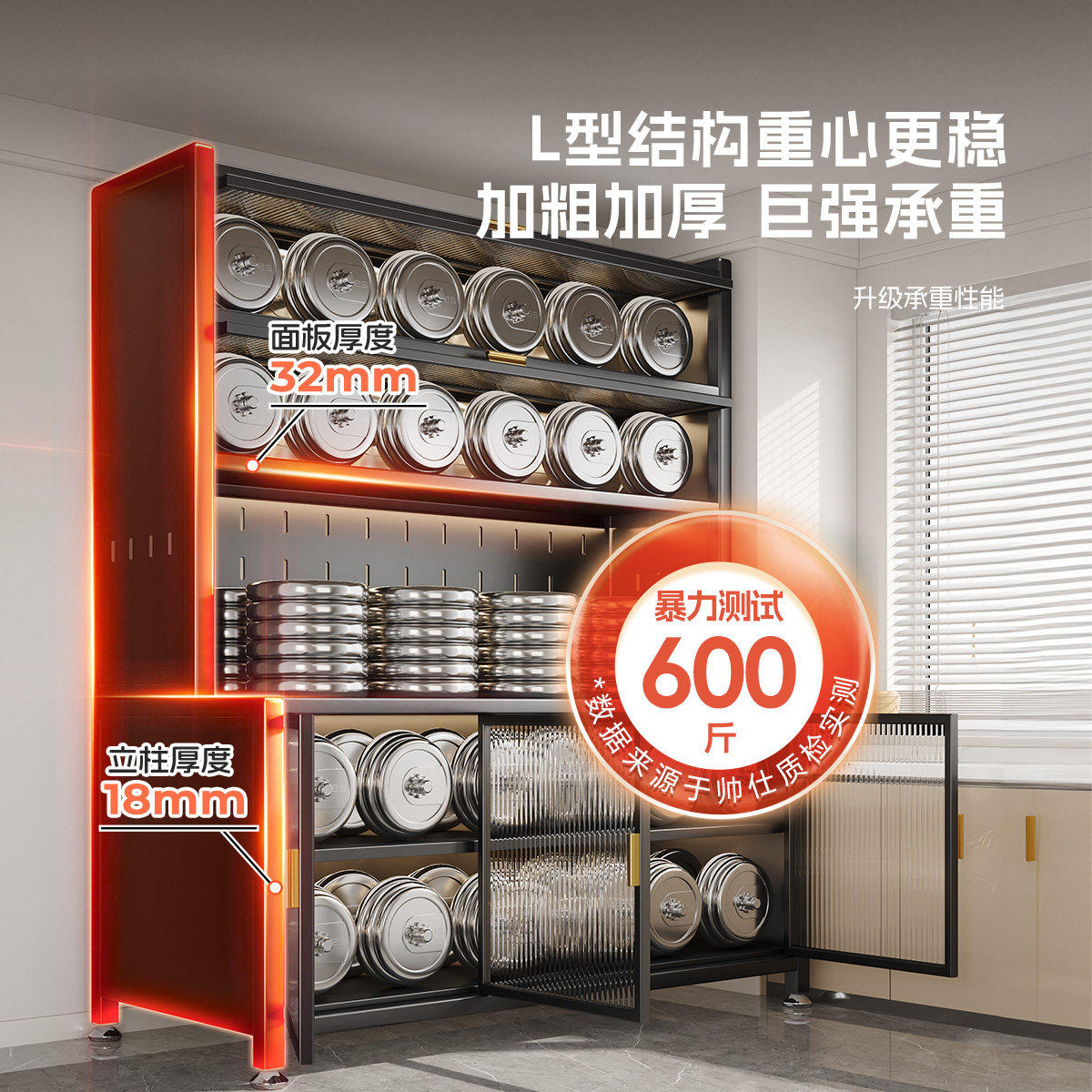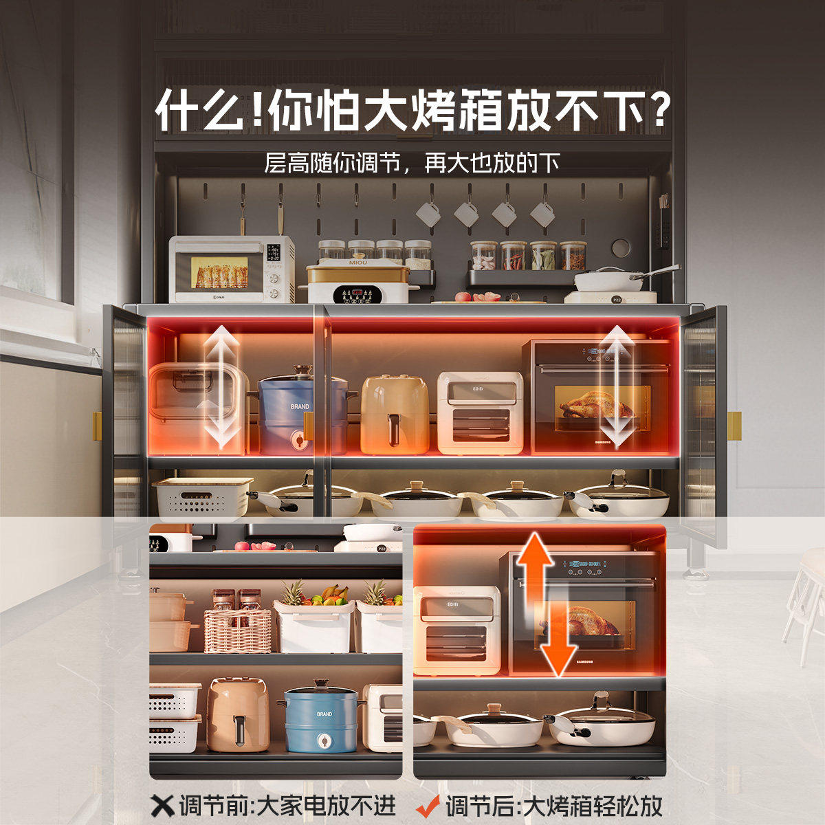 厨房置物架家用落地多层岩板储物柜多功能靠墙碳钢餐边收纳碗橱柜