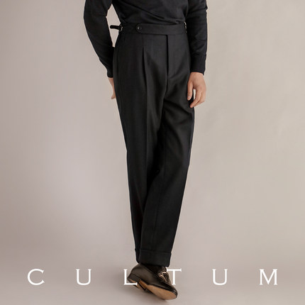 【加厚600g重】CULTUM拉绒精纺人字纹单褶高腰西裤男休闲西装长裤