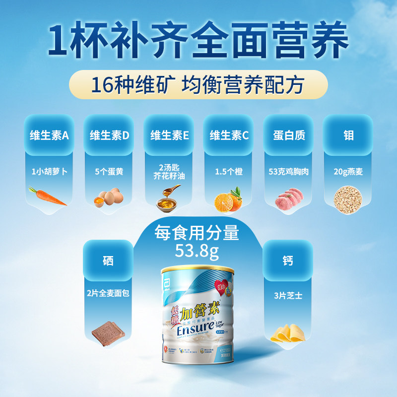 雅培ensure港版金装低糖加营素中老年高钙营养粉900g【官方正品】
