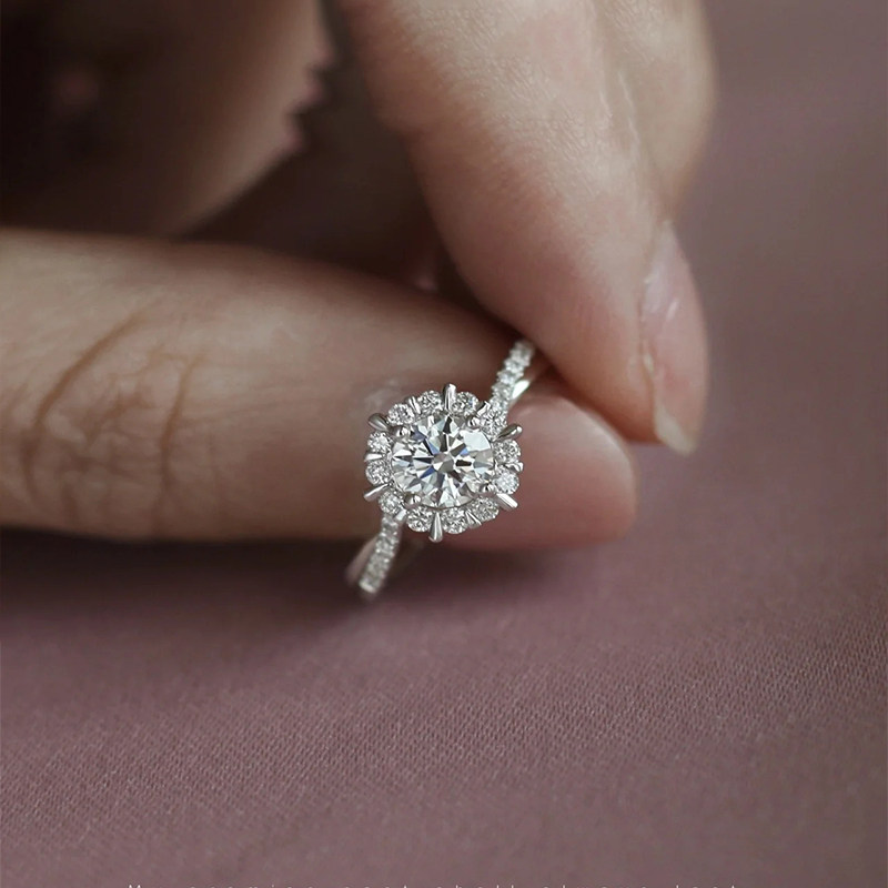 DR莫桑石钻戒女999纯银小众设计轻奢高级感求婚结婚仿真钻石戒指