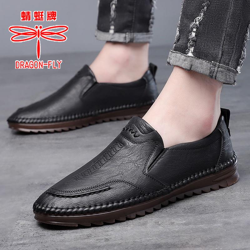 蜻蜓牌男鞋夏季透气2024新款皮鞋男真皮休闲牛筋软底中老年爸爸鞋