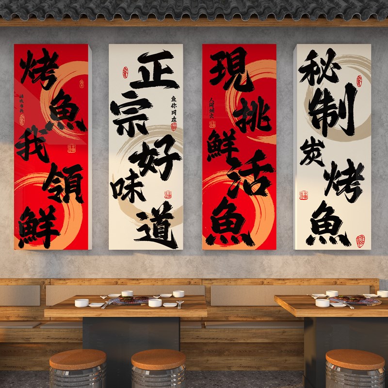 鱼火锅烤鱼店墙面装饰壁画氛围布置创意海报广告贴纸网红打卡背景