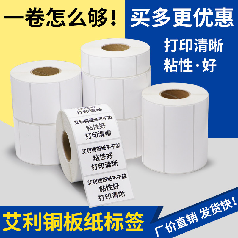 艾利铜版标签不干胶条码纸箱贴合格证打印纸空白背胶仓库卷标定制