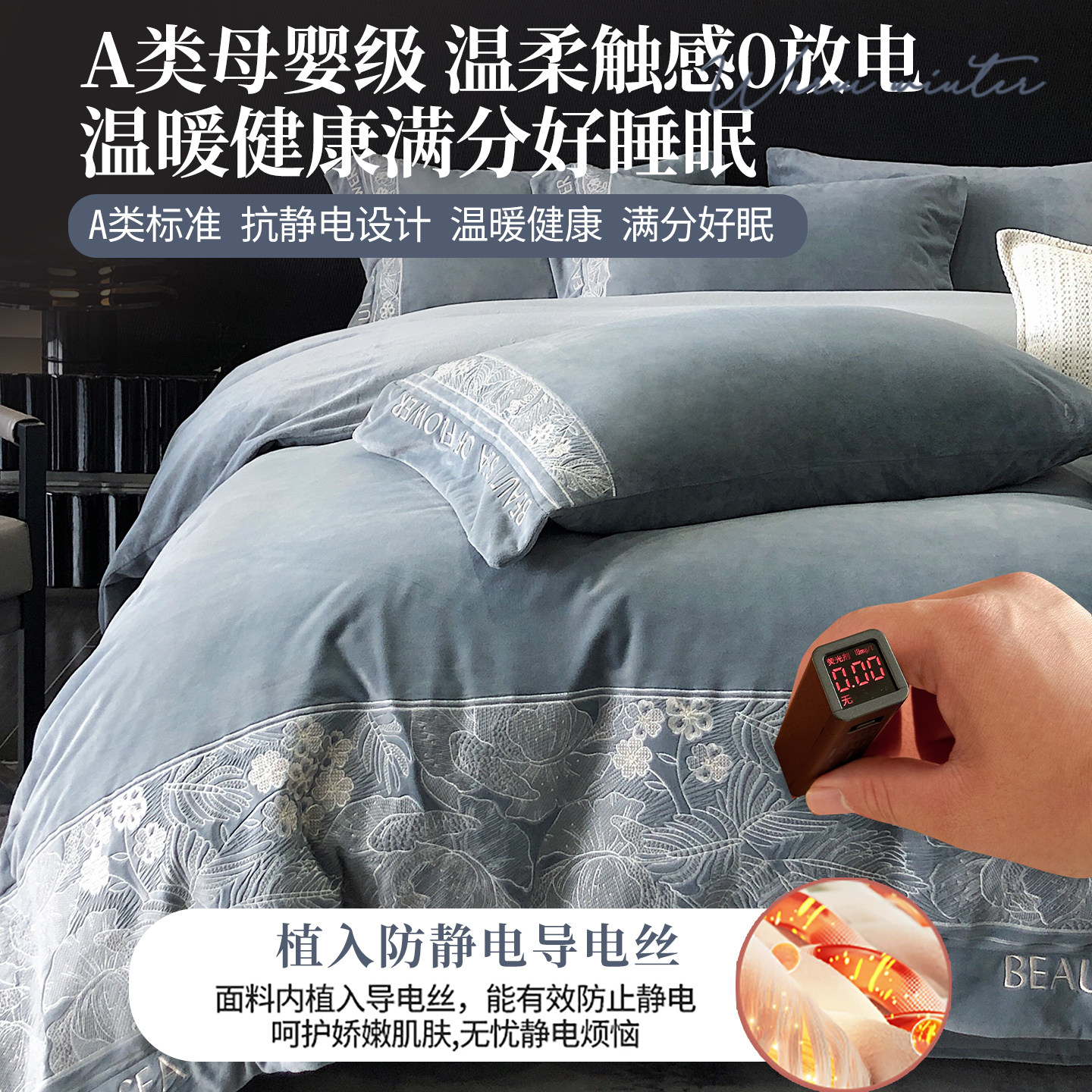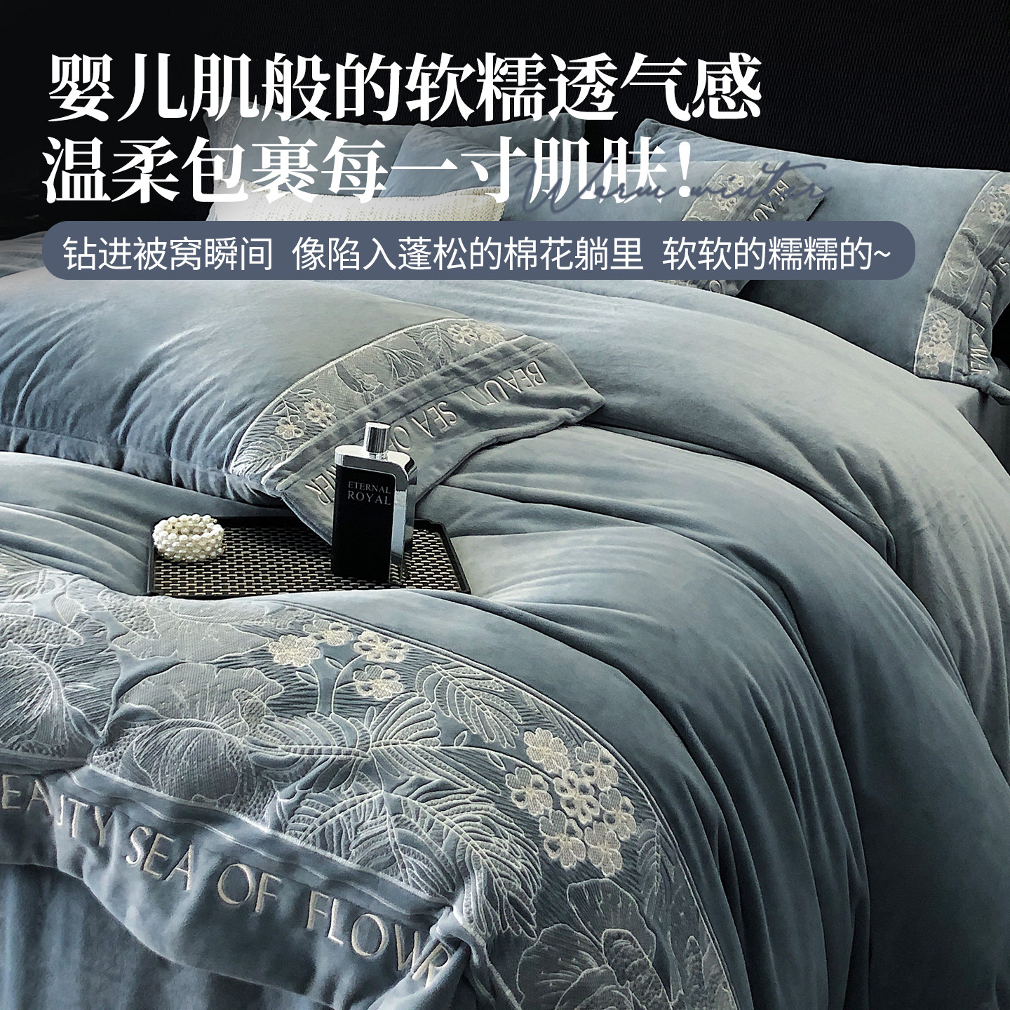 高端床上四件套牛奶绒a类母婴级冬季加厚加绒法兰珊瑚绒毛绒床品