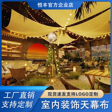 室内露营风酒吧咖啡厅装饰顶x帘帐篷露营天幕吊顶装饰布网红遮阳