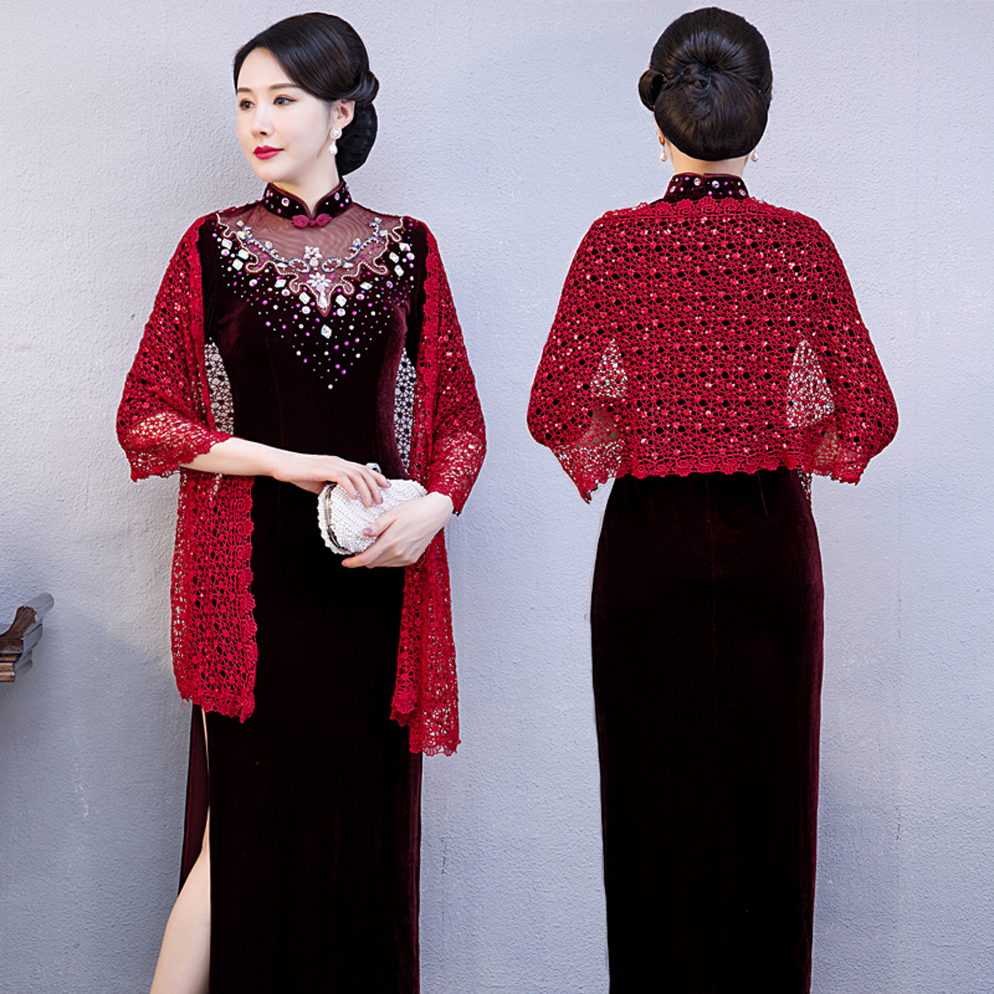 旗袍蕾丝高端喜婆婆妈妈婚宴披肩