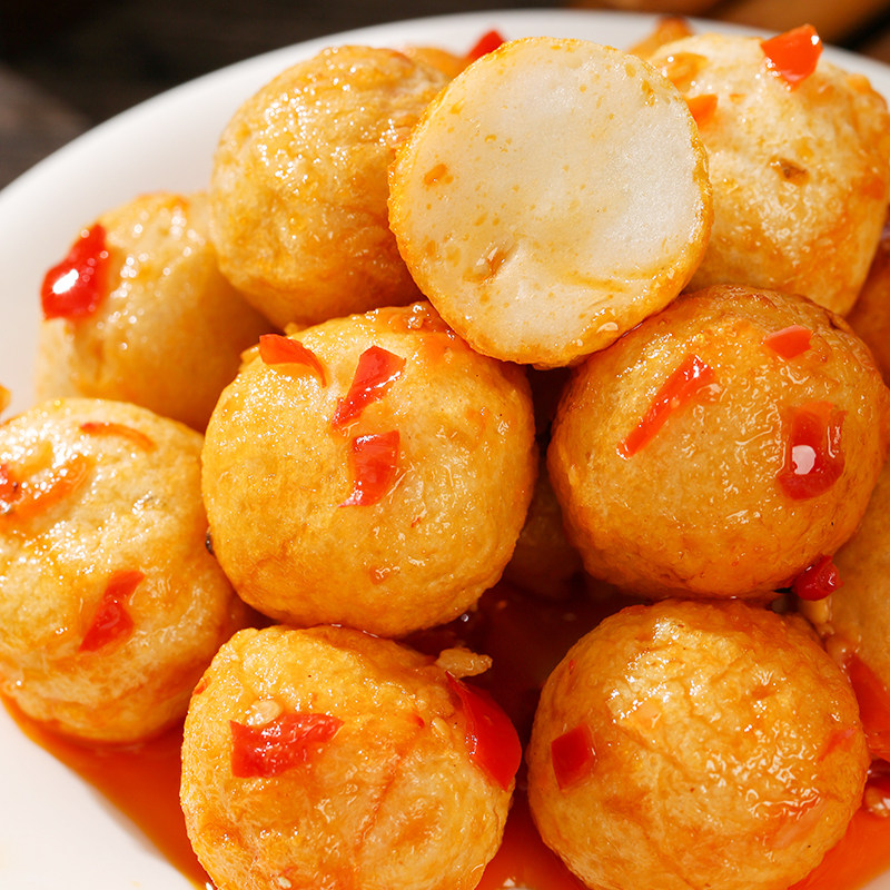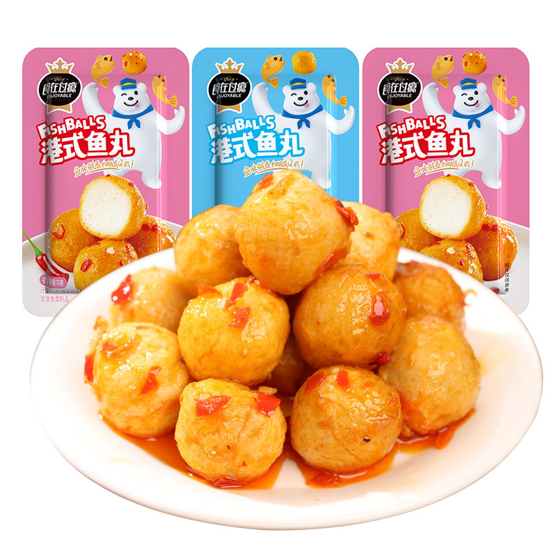 Q弹鱼蛋即食香辣烧烤港式风味鱼丸海味休闲零食解馋速食宿舍