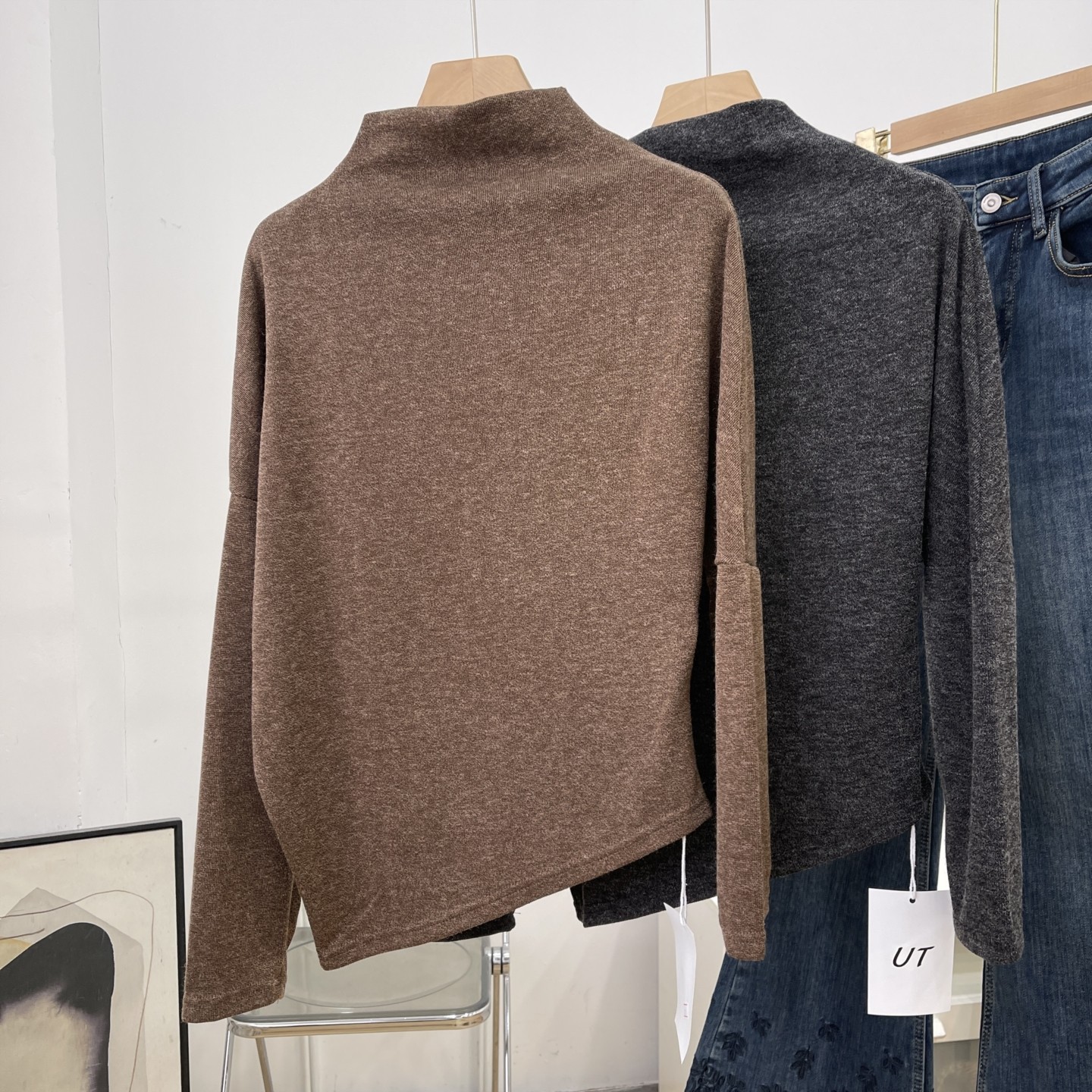 慵懒风半高领蝙蝠袖软糯套头毛衣宽松显瘦不规则针织衫L#7