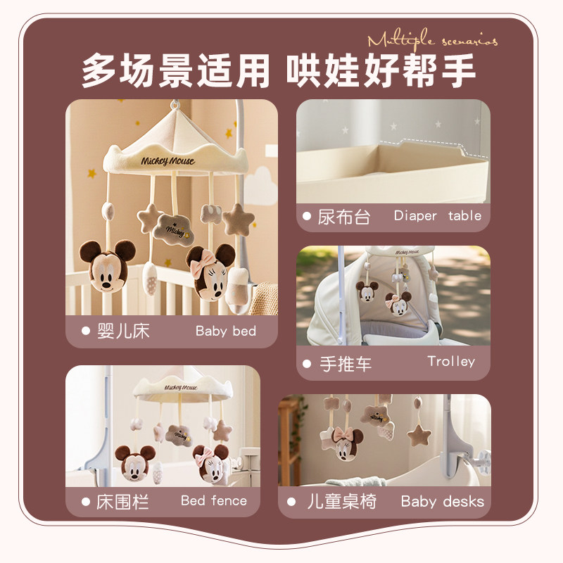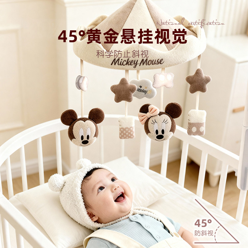 迪士尼婴儿床摇铃新生儿礼盒安抚哄睡悬挂式床上挂件宝宝音乐床铃