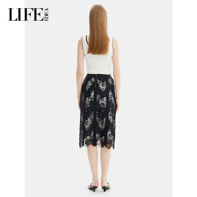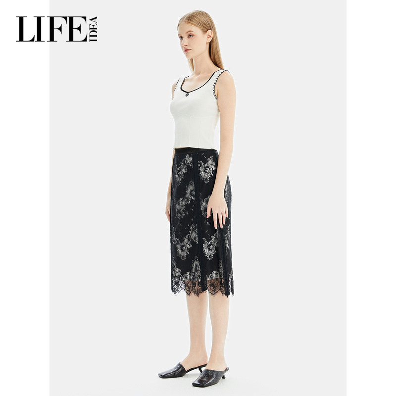 莱芙·艾迪儿商场同款秋新品针织背心女u领撞色绣花打底上衣