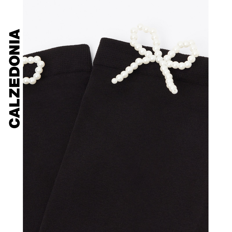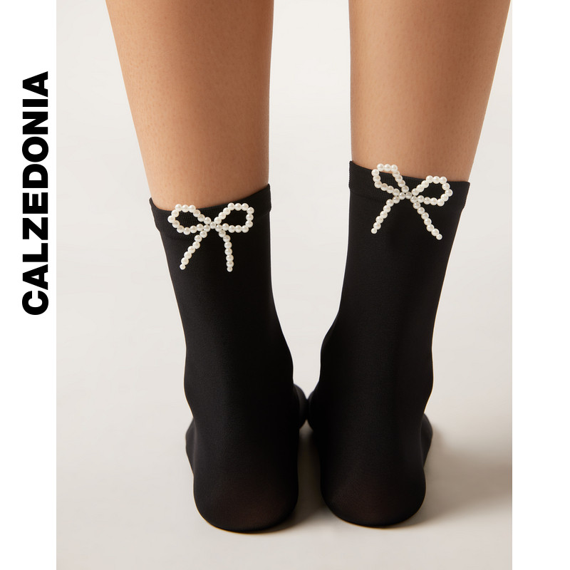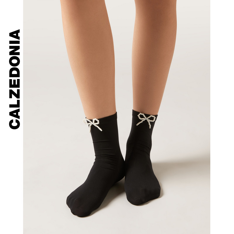 CALZEDONIA卡泽意袜春季女士时尚黑色珍珠蝴蝶结装饰短袜DCZ071