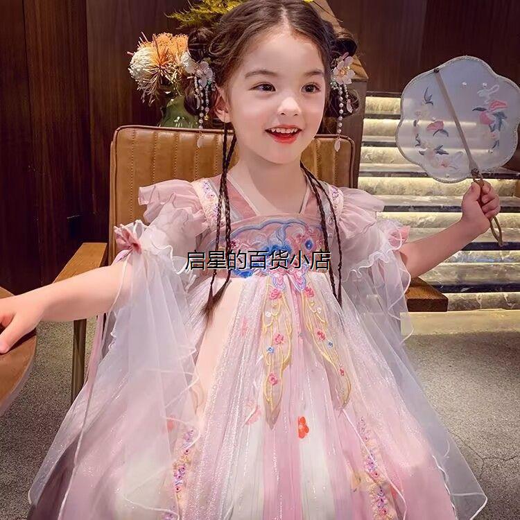女童汉服公主连衣裙古风夏装2025唐装新款儿童古装小女孩超仙短袖