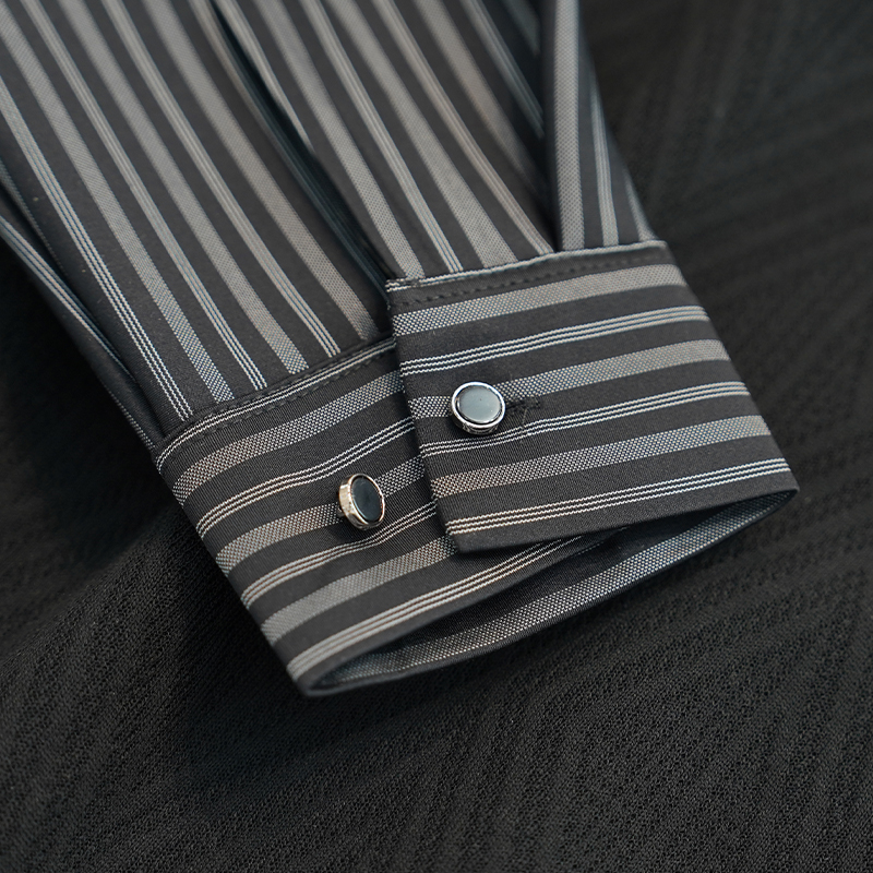 长袖T恤男装衬衫领假两件套中老年冬季一体绒宽松休闲条纹爸爸装