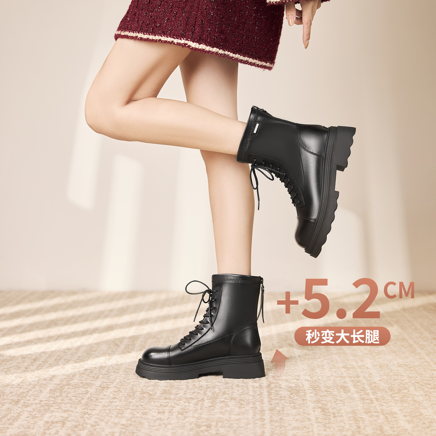 奥康 女鞋2025冬季马丁靴甜酷瘦瘦靴粗跟增高显腿长百搭短靴