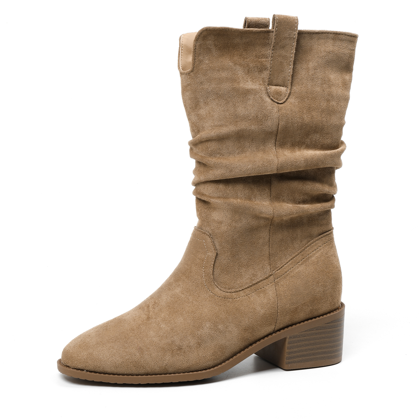 真皮~复古美拉德短靴女粗跟堆堆靴西部牛仔靴中筒马丁靴大码女靴