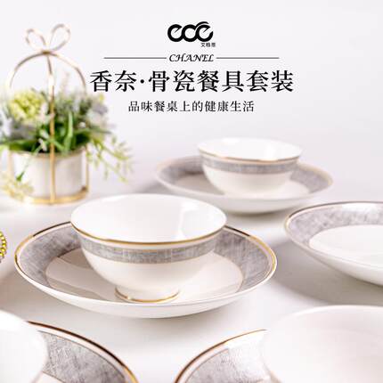 艾格恩香奈骨瓷碗碟餐具套装家用轻奢碗盘乔迁送礼高级感礼盒装