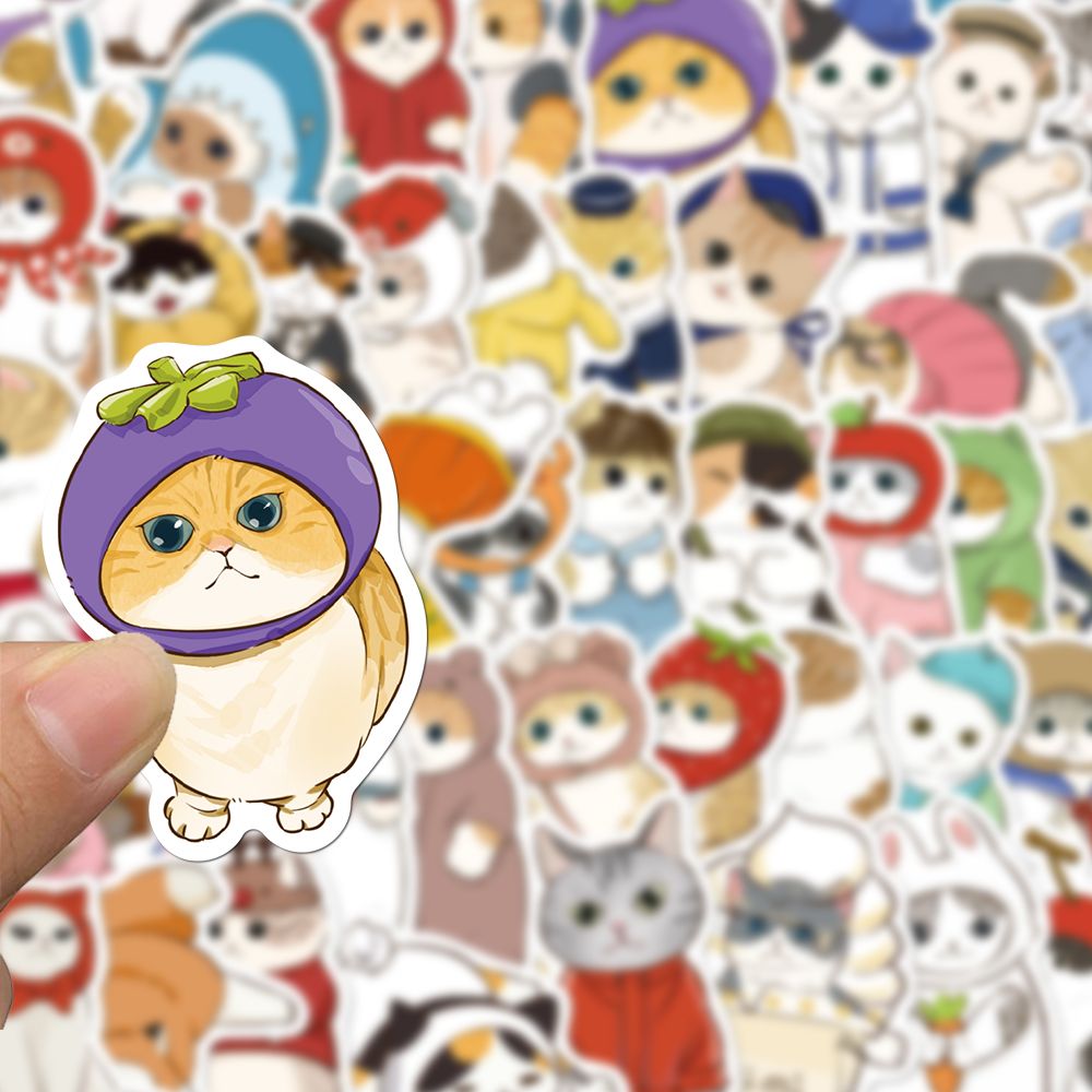 100张衣服头套猫贴纸治愈小清新猫咪小猫可爱热门diy手账手机壳笔记本电脑平板ipad水杯桌面装饰贴画