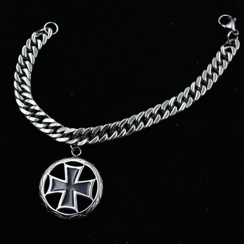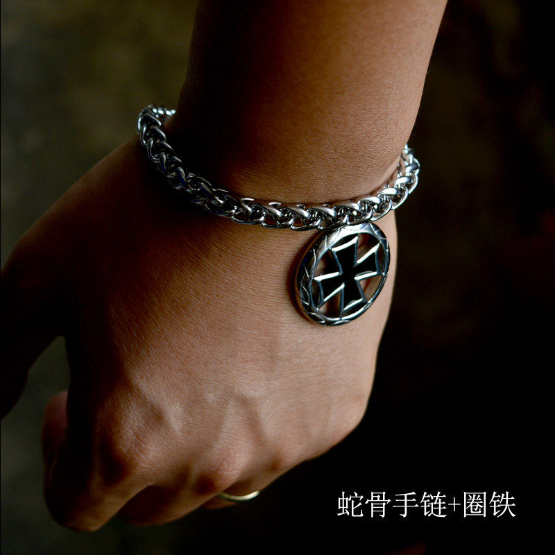黑铁德意男士时尚杂志钛钢吊坠项链蛇骨手链十字手链不锈钢不褪色