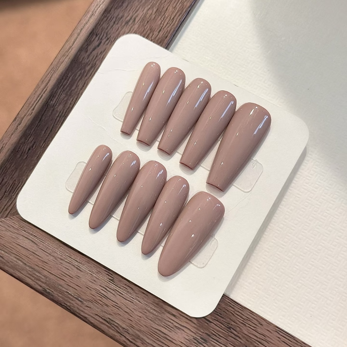 纯手工定制秋冬显白CL红底高跟鞋美甲裸色气质中长款穿戴甲