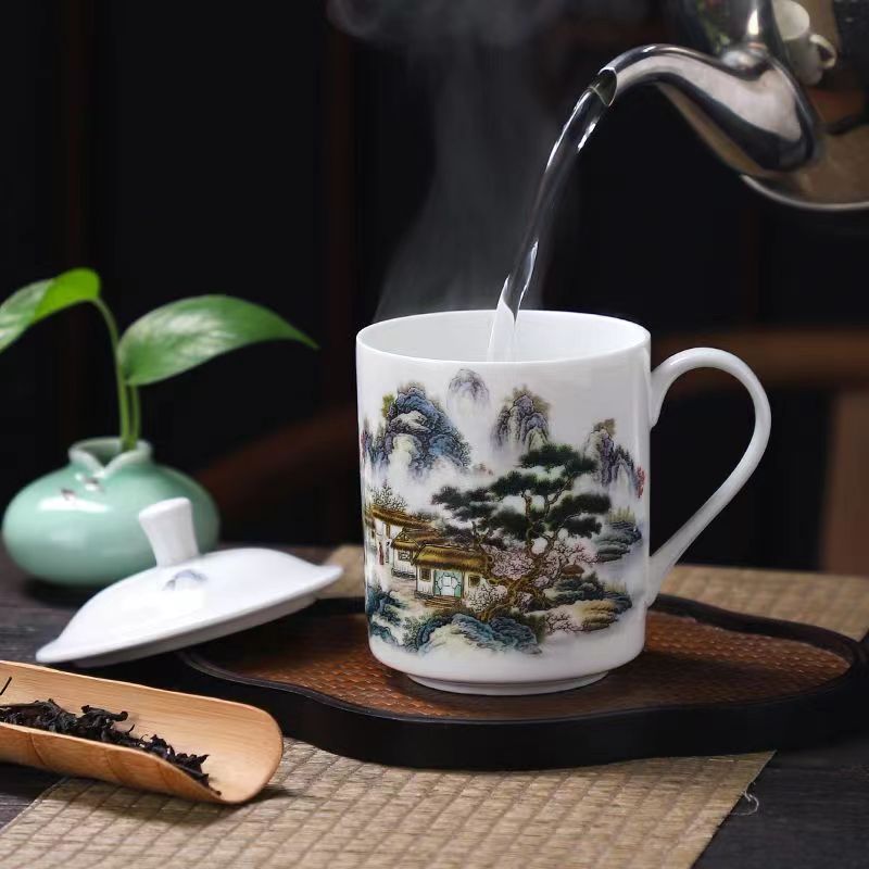 景德镇骨瓷茶杯家用陶瓷杯带盖大容量水杯办公茶杯会议杯定制刻字